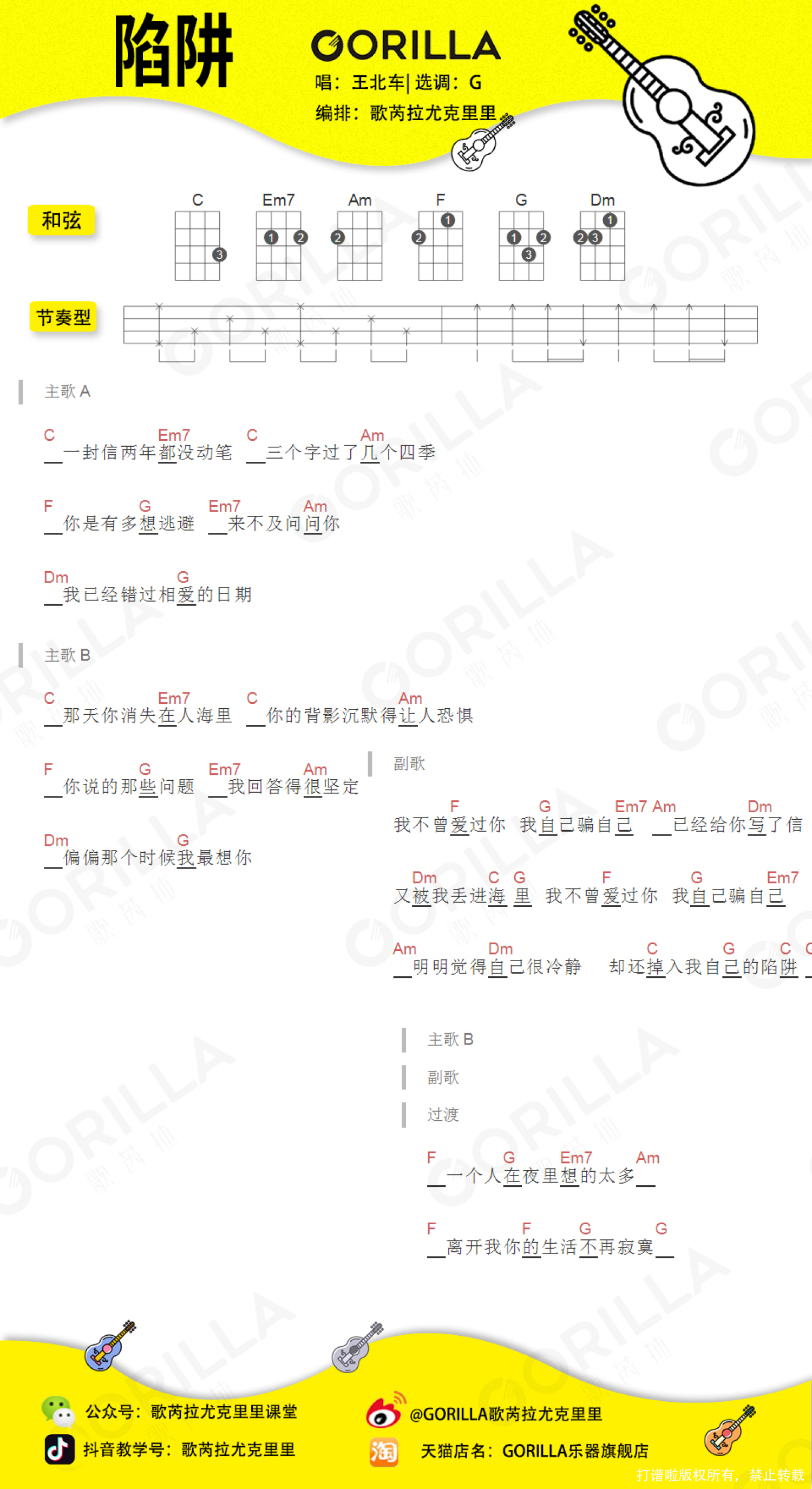 陷阱尤克里里谱 - 王北车