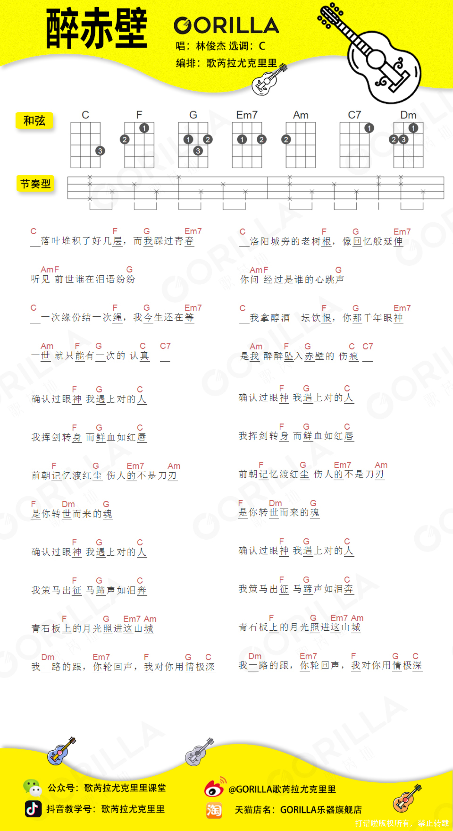 醉赤壁尤克里里谱 - 林俊杰