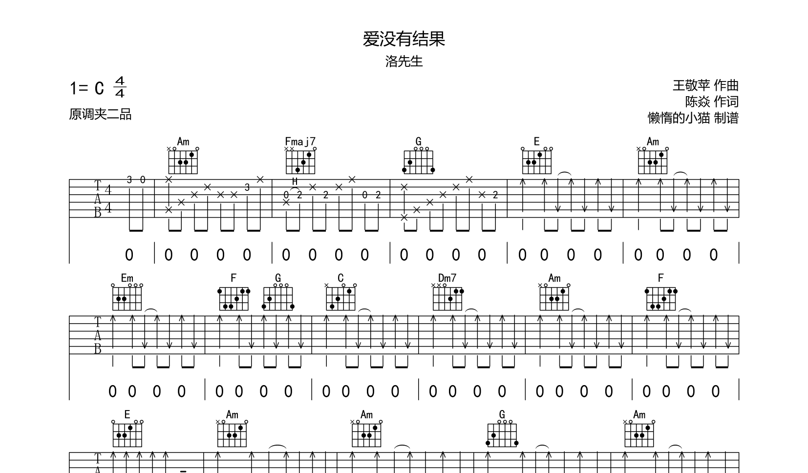 爱没有结果吉他谱 - 洛先生 - C调吉他弹唱谱 - 原版