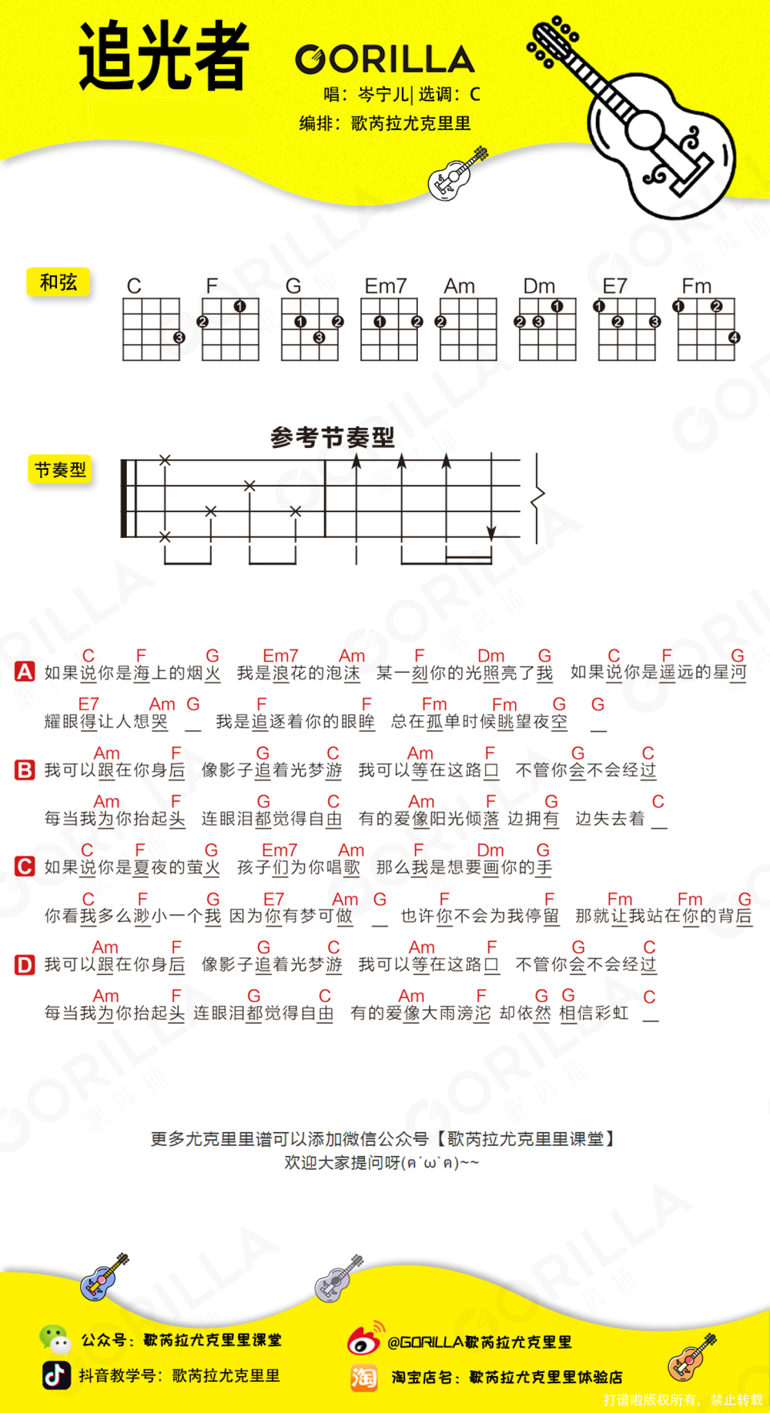 追光者尤克里里谱 - 岑宁儿