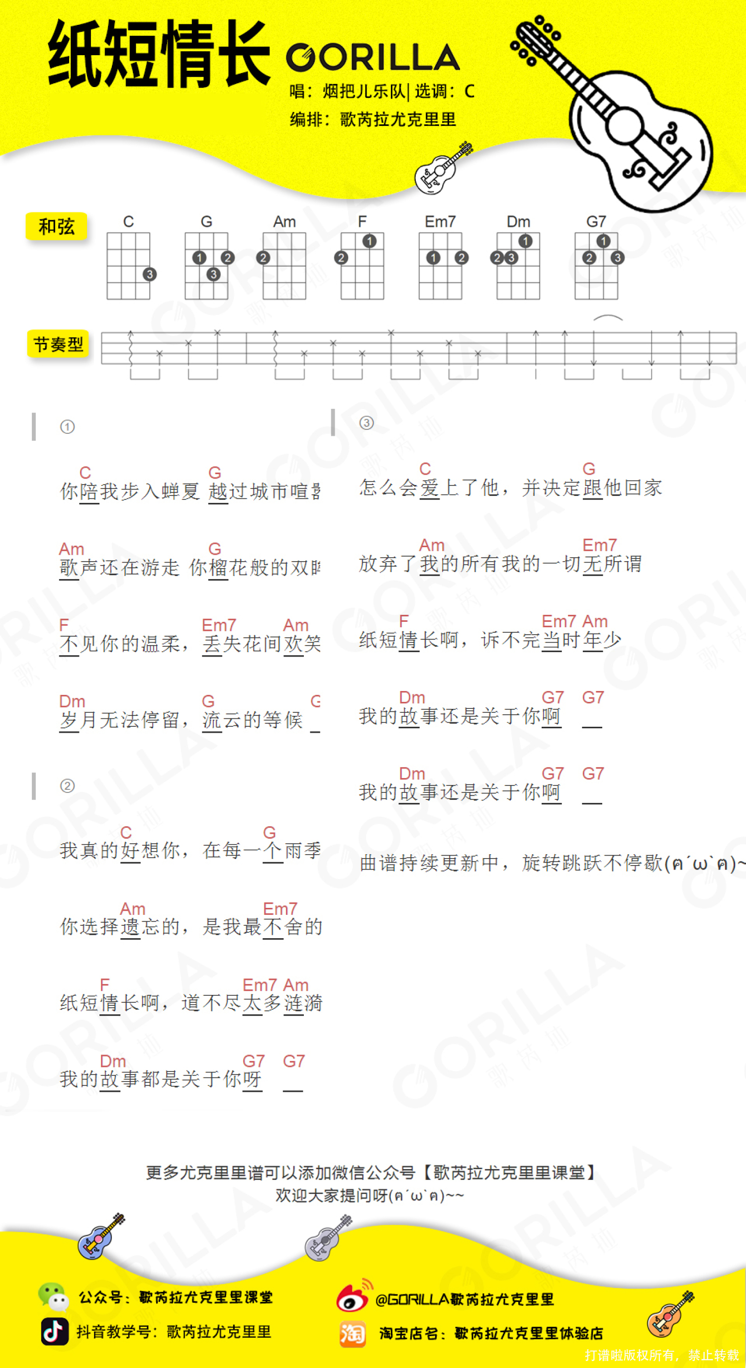 纸短情长尤克里里谱 - 烟把儿乐队
