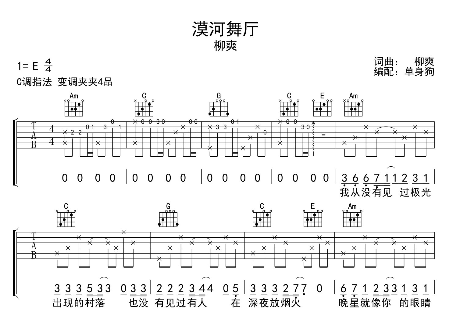 漠河舞厅吉他谱 - 柳爽 - C调吉他弹唱谱 - 原版