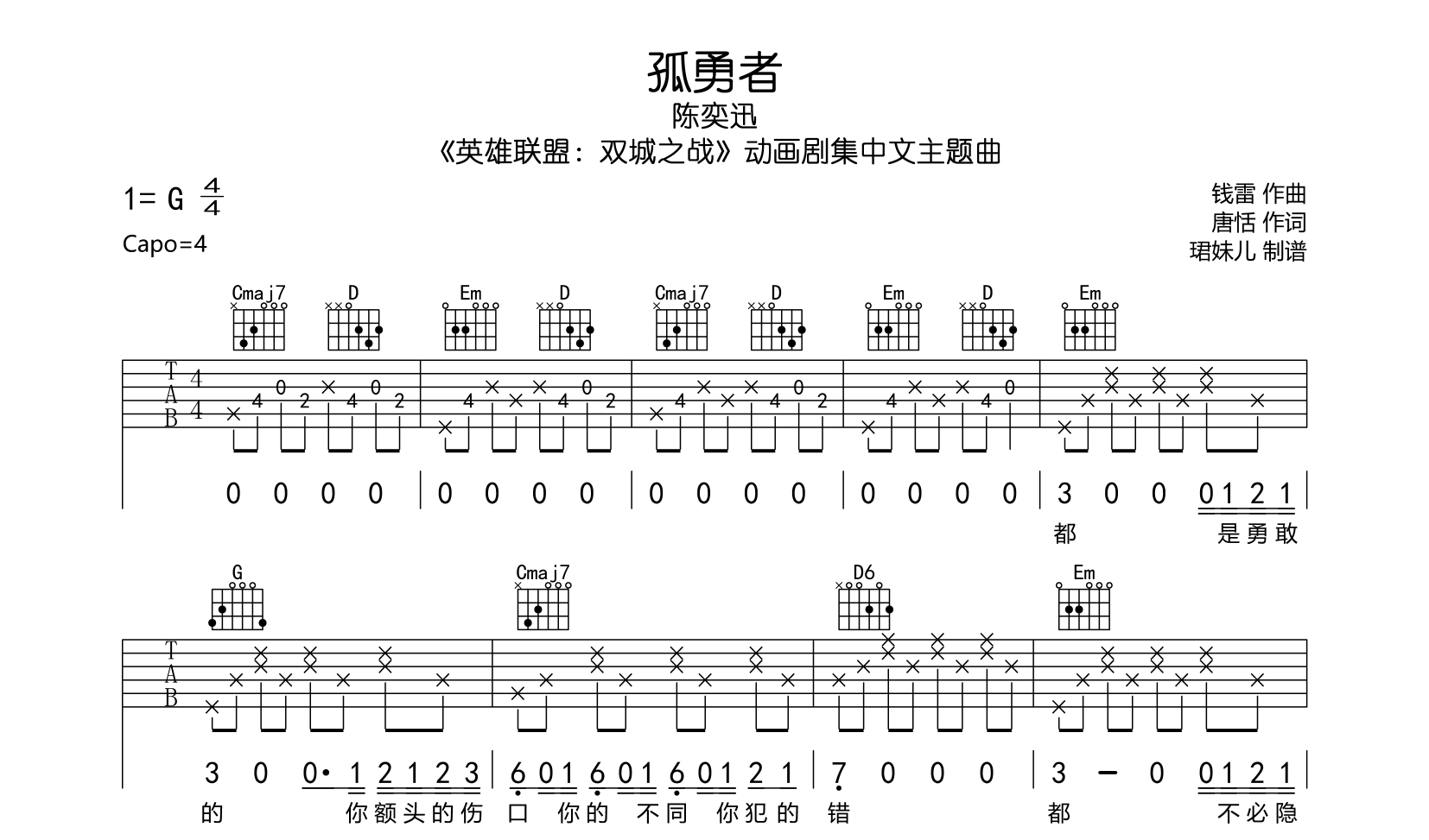 孤勇者吉他谱 - 主题曲 - G调吉他弹唱谱