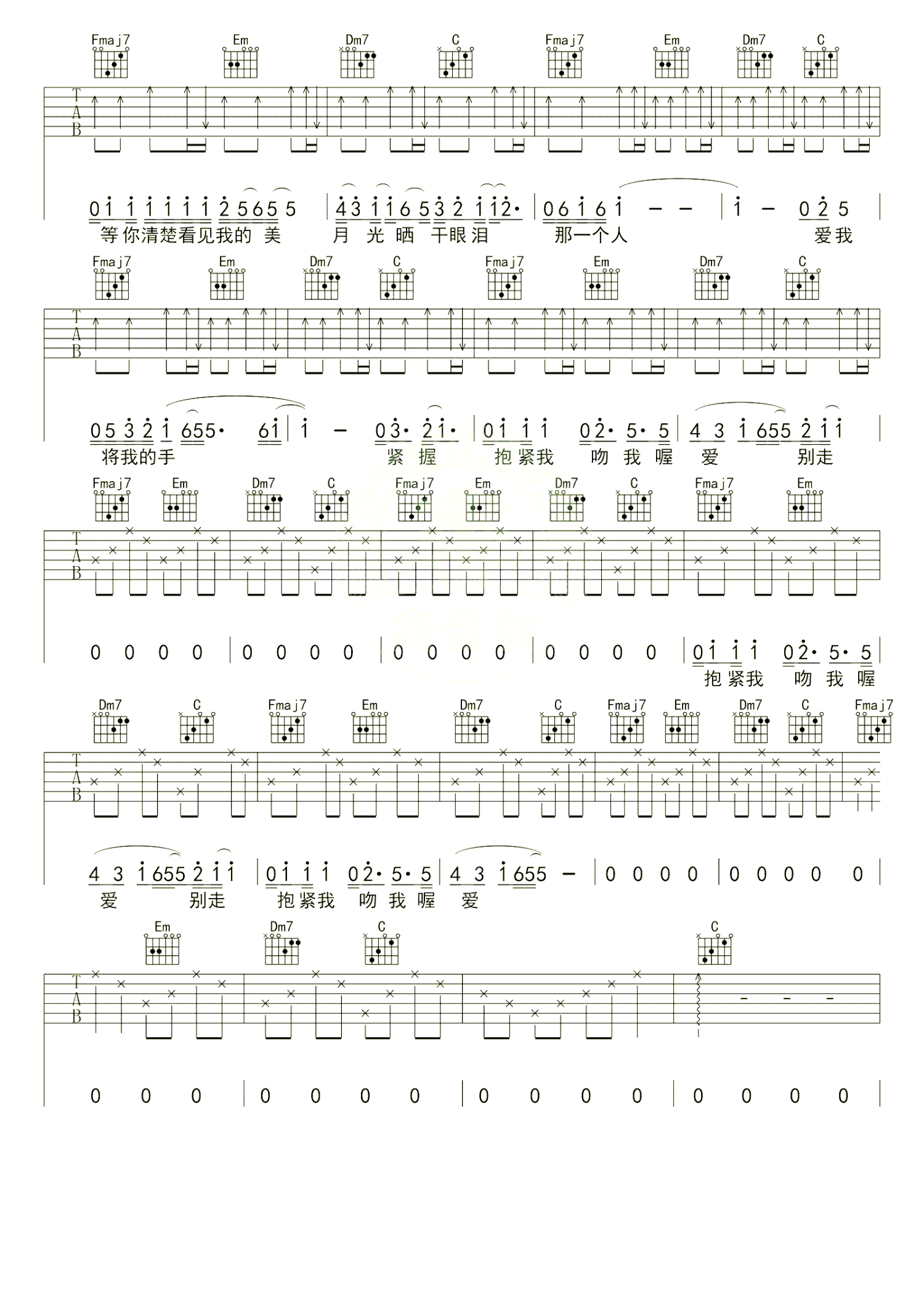 当前位置:琴谱网>吉他弹唱>拥抱