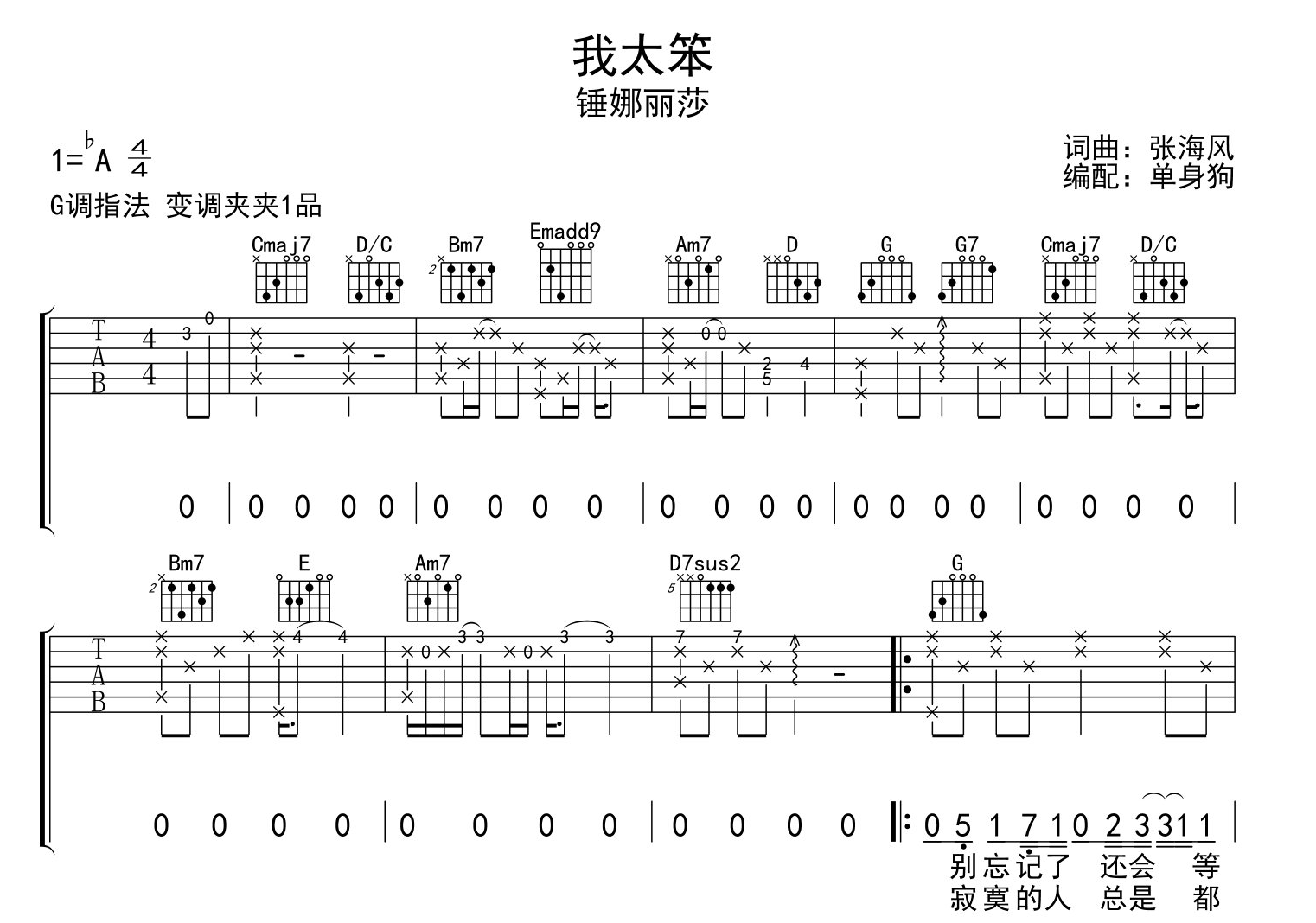 我太笨吉他谱 - 锤娜丽莎 - G调吉他弹唱谱