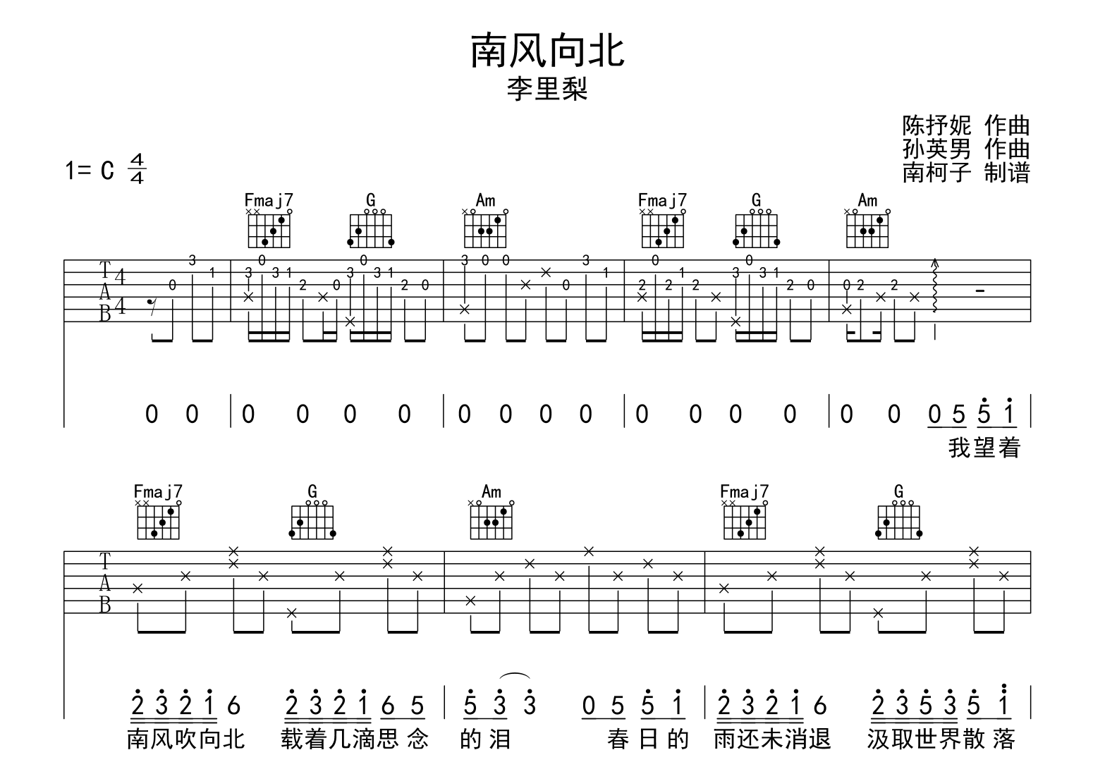 南风向北吉他谱 - 李里梨 - C调吉他弹唱谱 - 原版