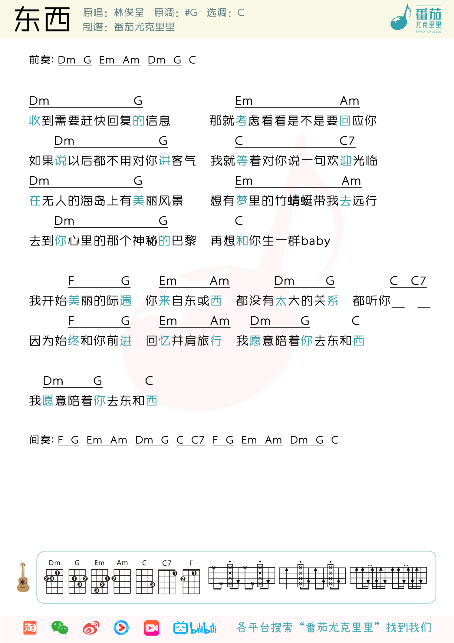 东西尤克里里谱 - 林俊呈
