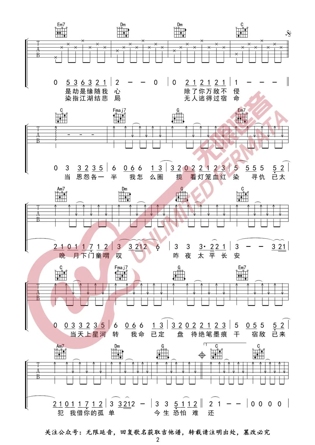 曲谱介绍: 许嵩《天龙八部之宿敌》吉他弹唱谱,采用C调指法编配原版,共有3张高清图谱。