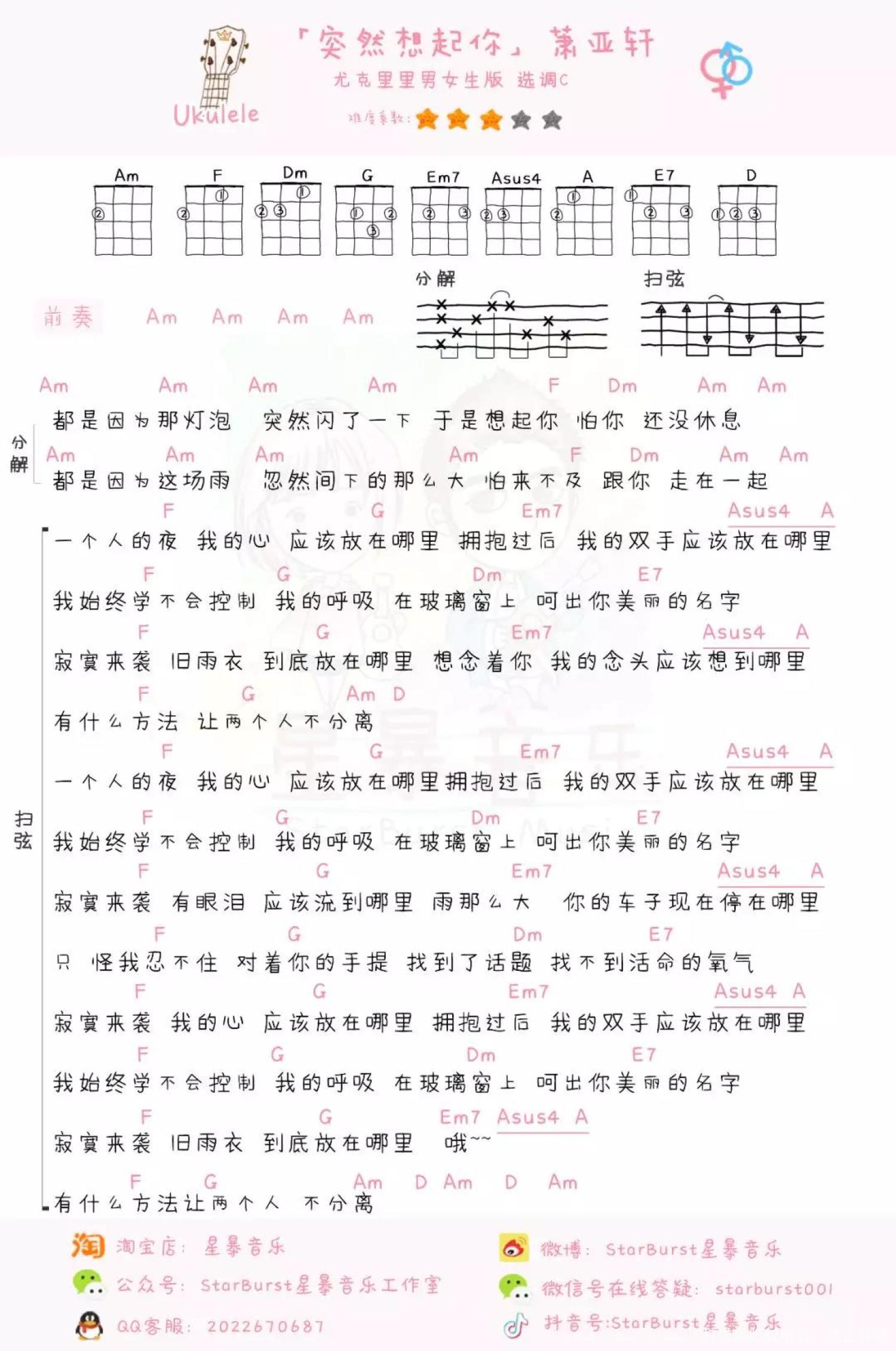 当前位置:琴谱网>尤克里里>突然想起你
