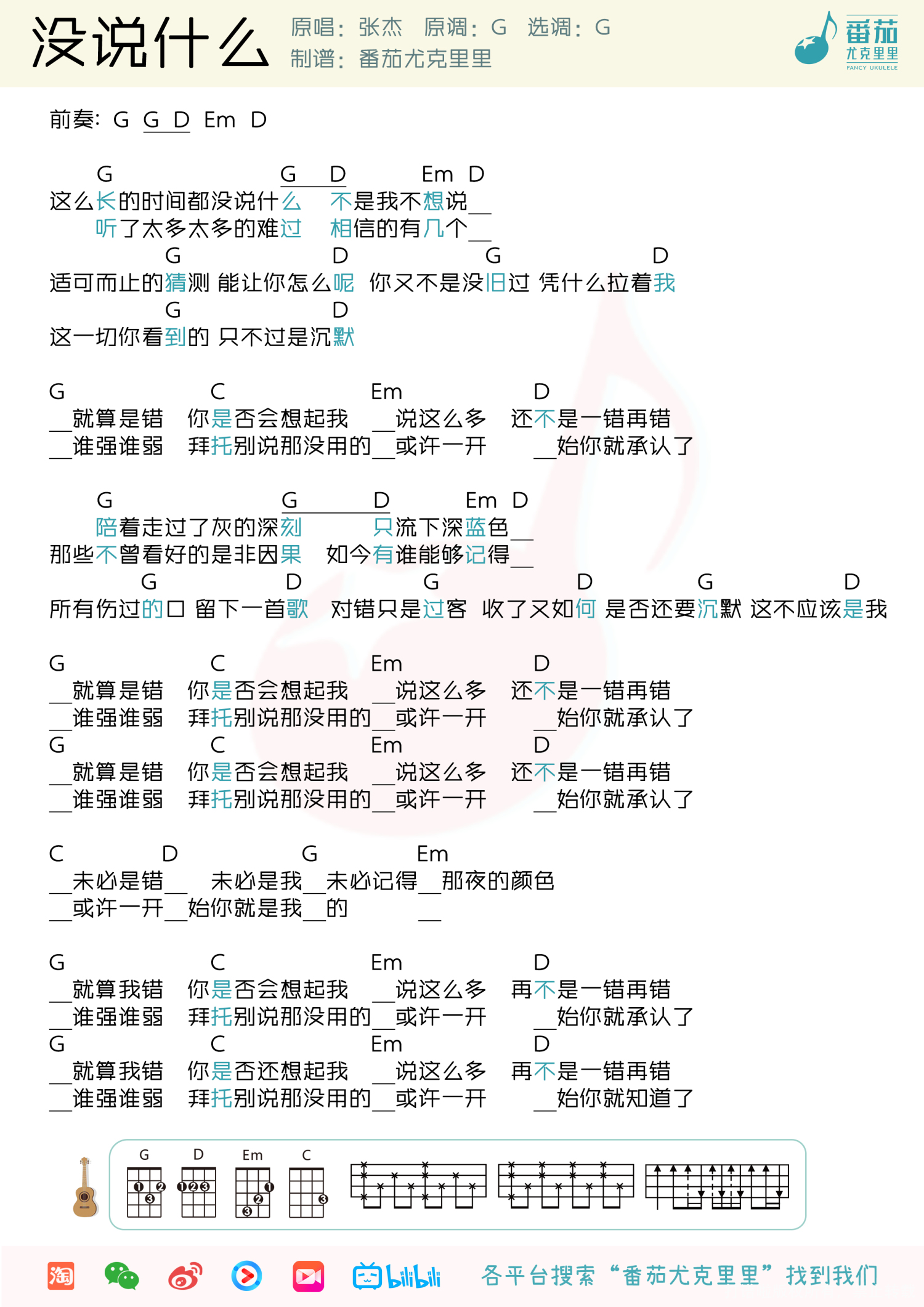 没说什么尤克里里谱