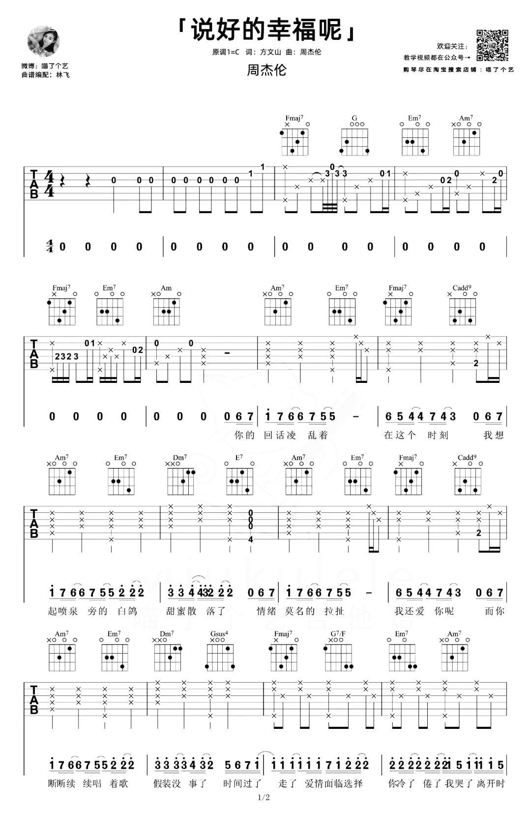 曲谱介绍: 这首曲谱由喵了个艺编配,总共2张高清图片谱,包含了完整的前奏,整体难度不大,有个别和弦需要熟悉并掌握转换,这个版本是根据女生版本进行的演示和教学,大家可以先参考相关视频,然后结合练习。 《说好的幸福呢》吉他弹唱演示视频 《说好的幸福呢》吉他弹唱教学视频