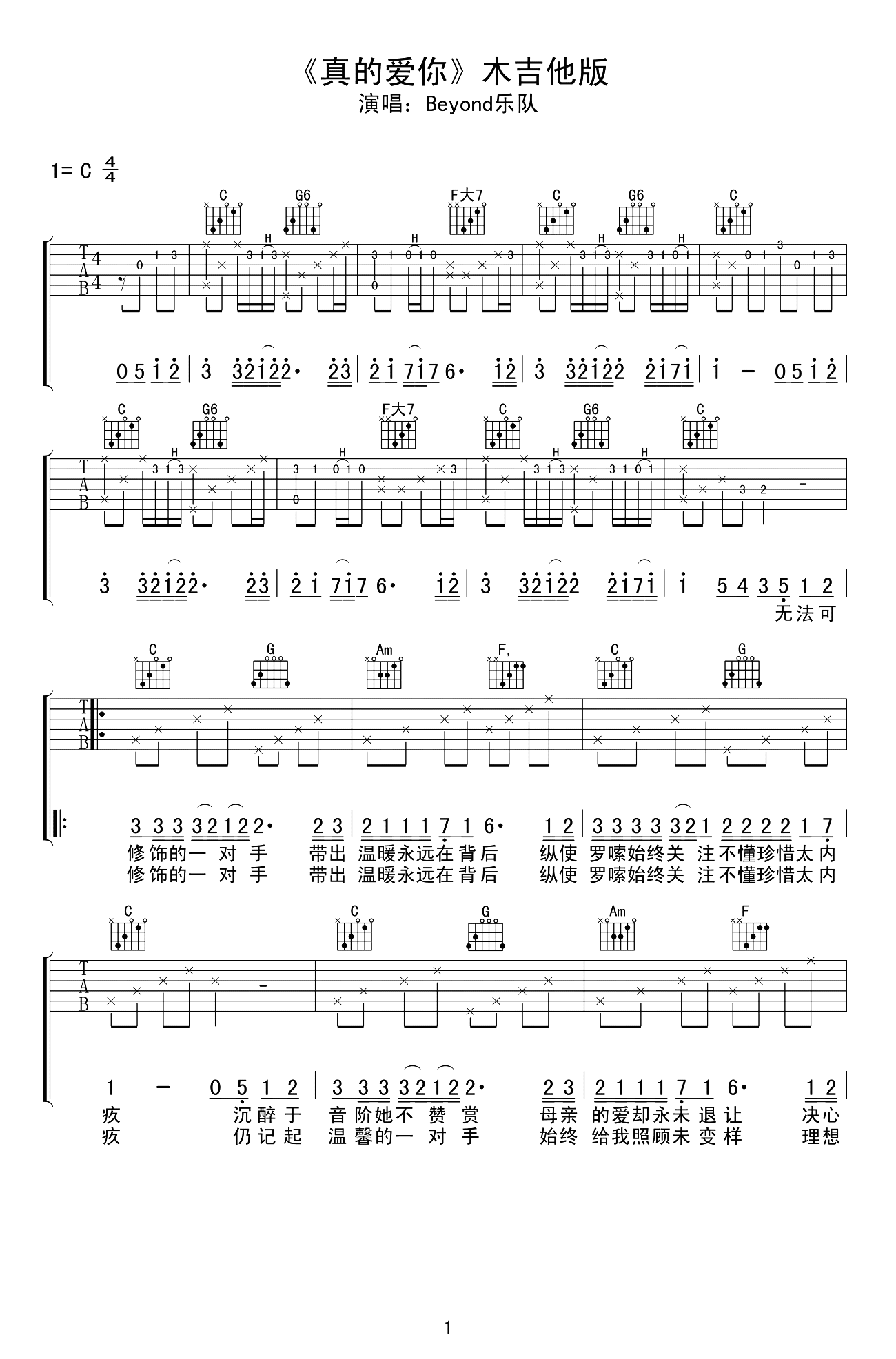 真的爱你吉他谱 - Beyond - C调吉他弹唱谱 - 原版