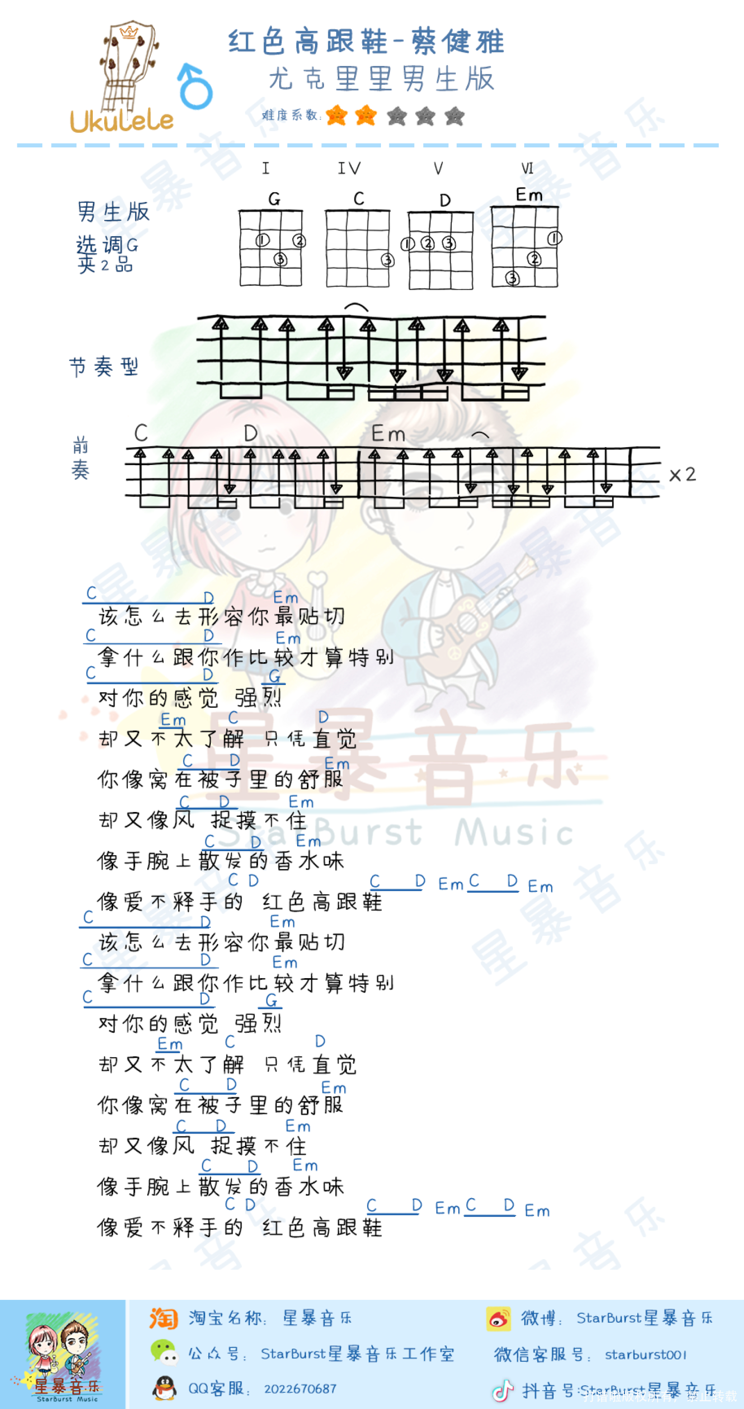 红色高跟鞋尤克里里谱 - 蔡健雅