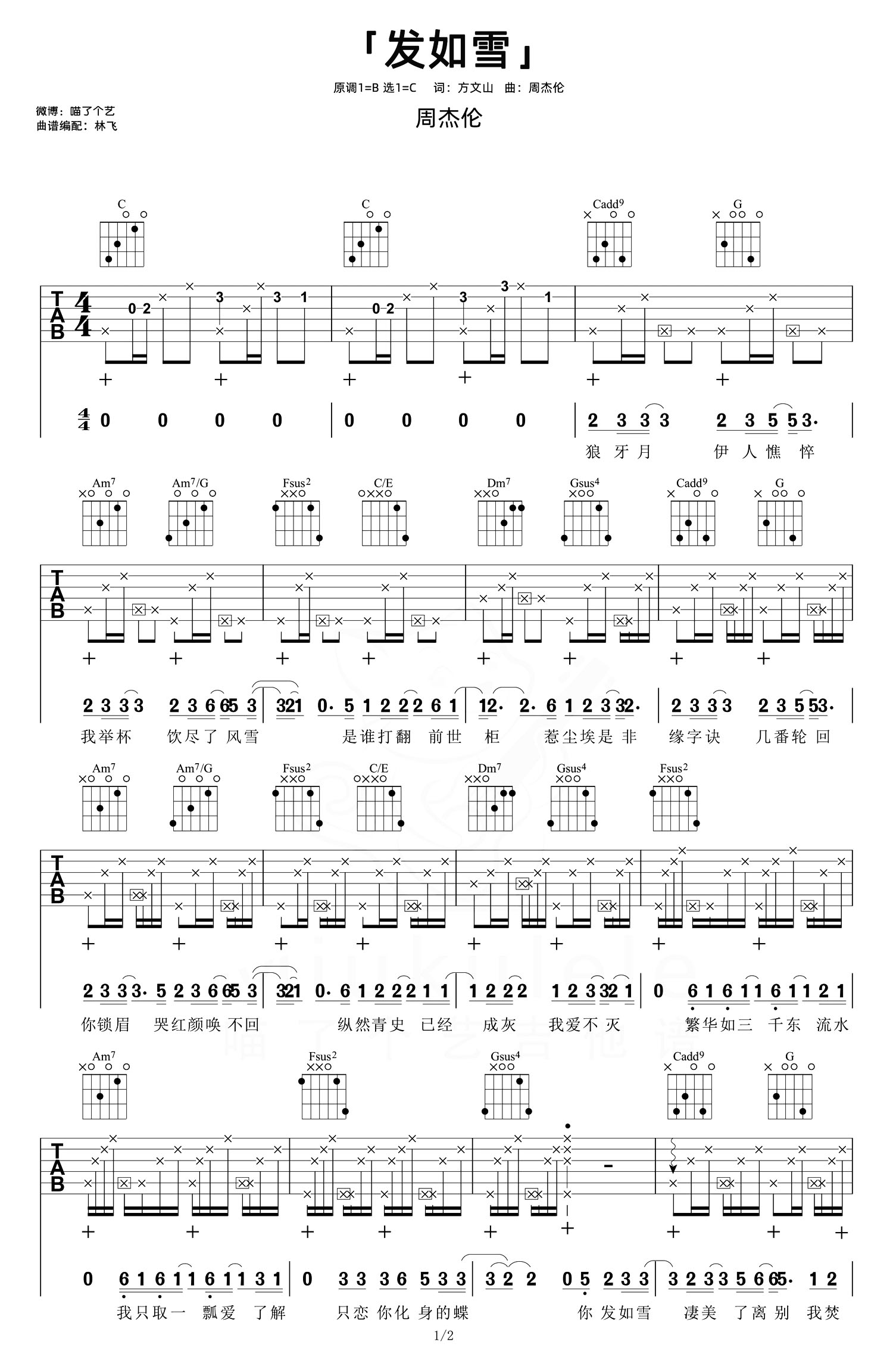 发如雪吉他谱 - 周杰伦 - C调吉他弹唱谱