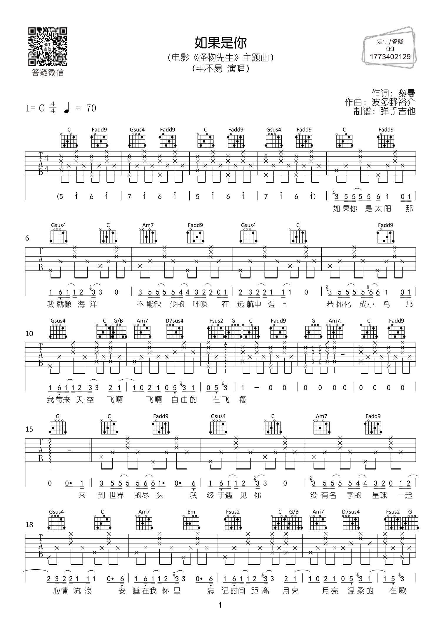 怪物先生吉他谱 - 毛不易 - C调吉他弹唱谱
