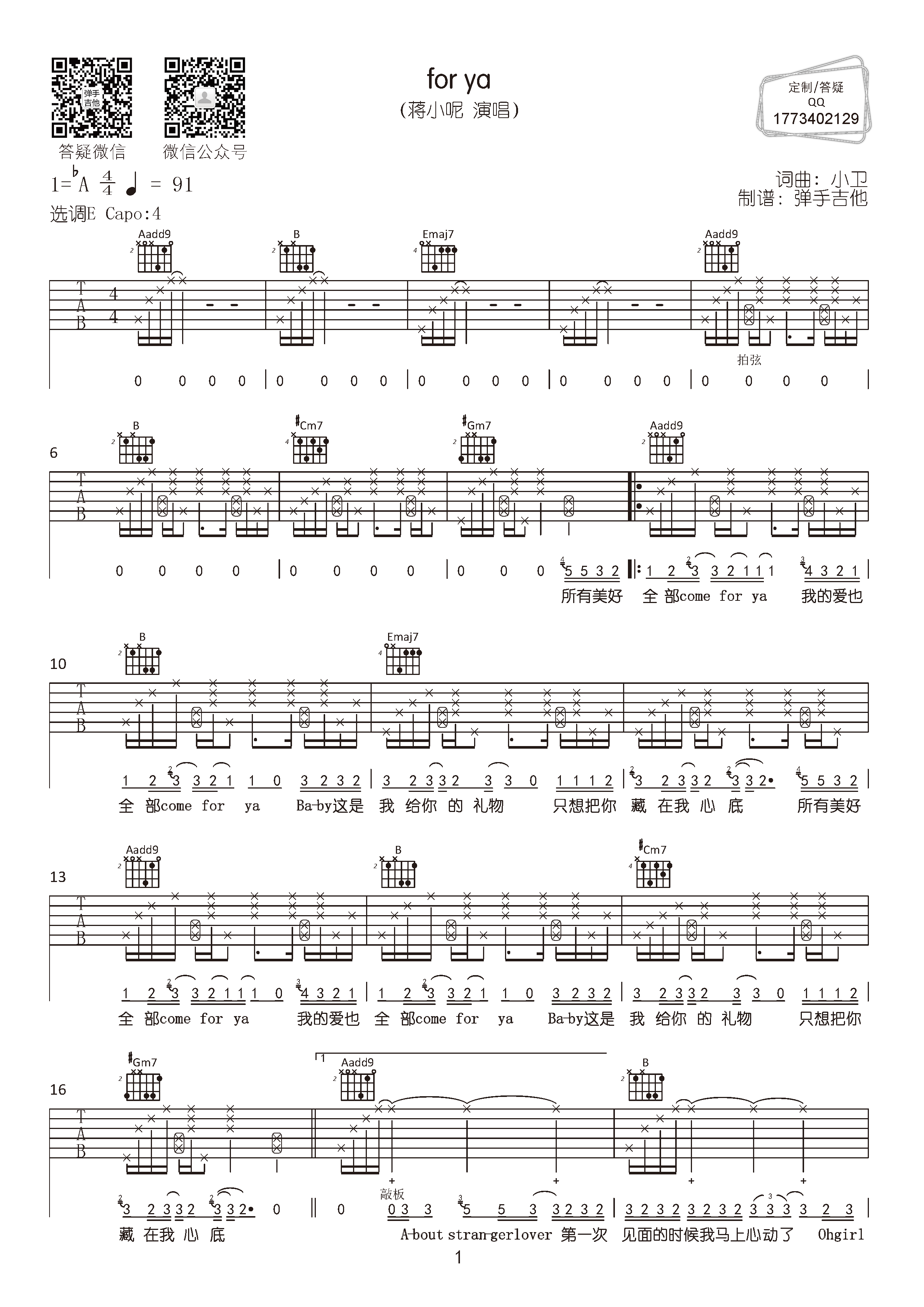 for ya吉他谱 - for - E调吉他弹唱谱 - 原版