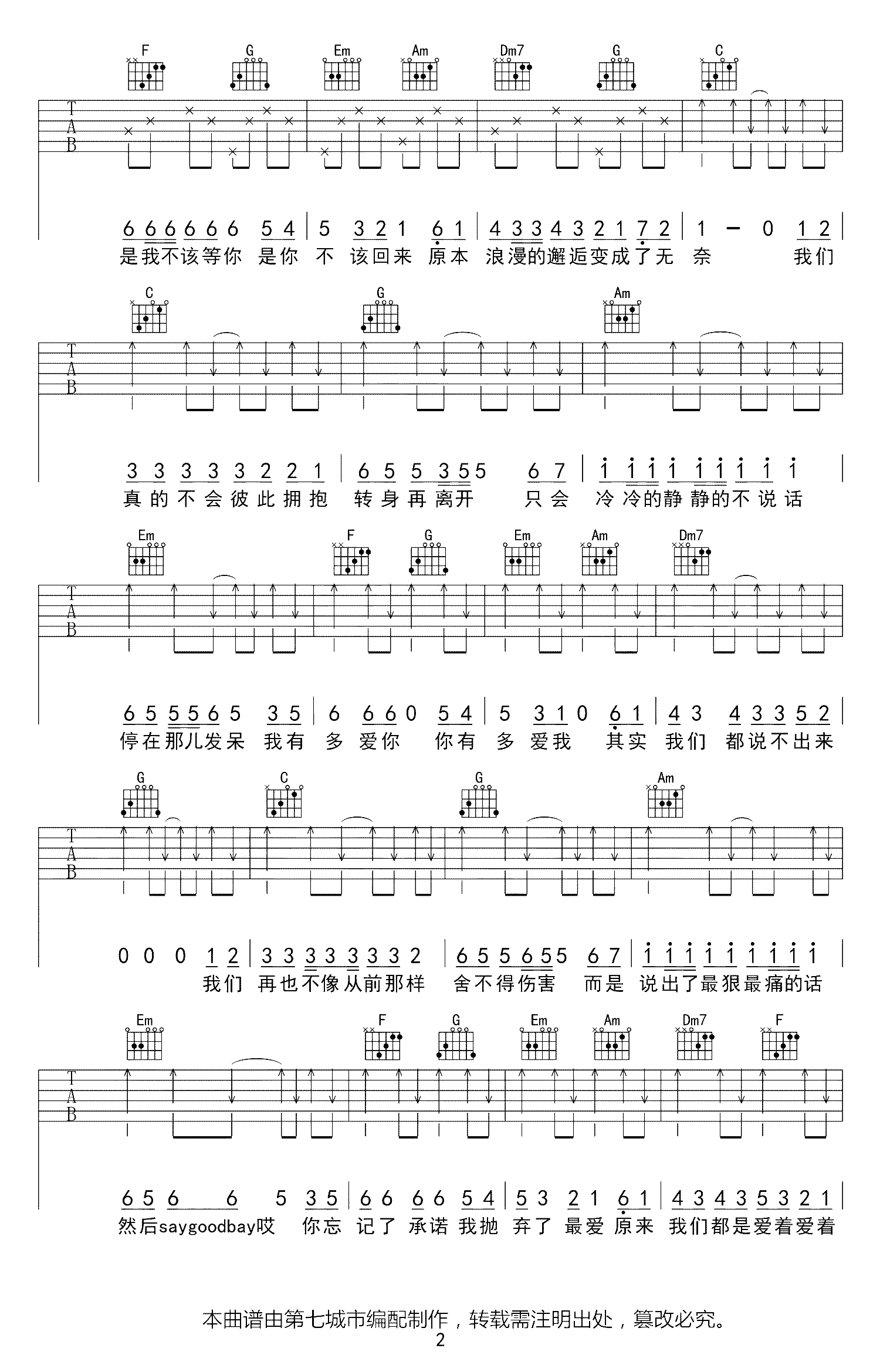 当前位置:琴谱网>吉他弹唱>最后的人