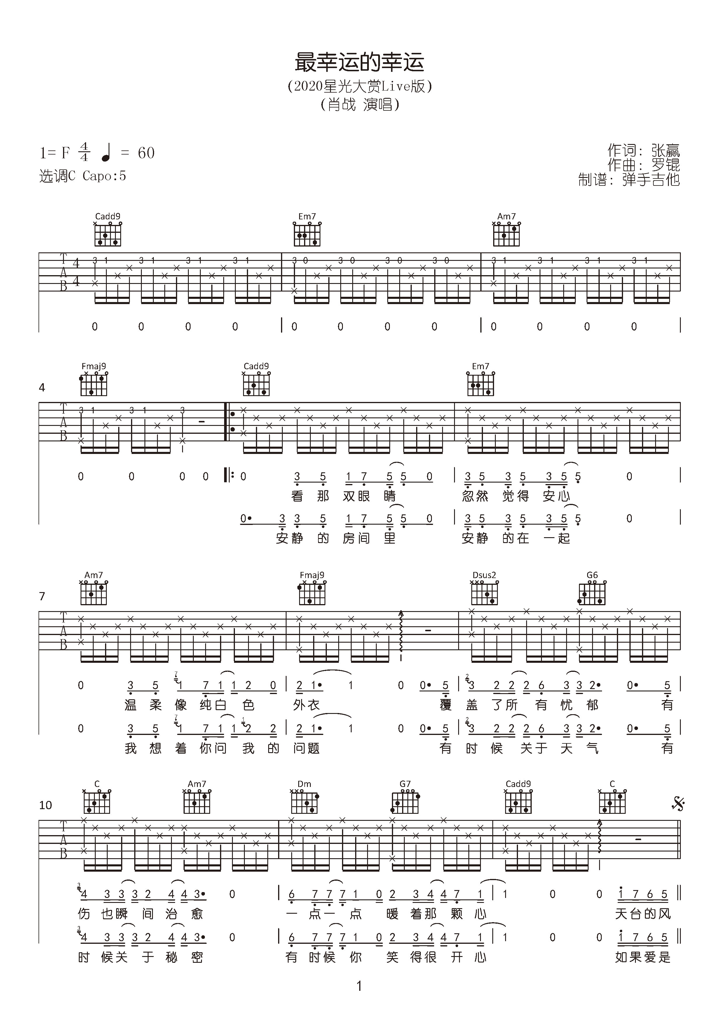 最幸运的幸运吉他谱 - 肖战 - C调吉他弹唱谱 - 原版