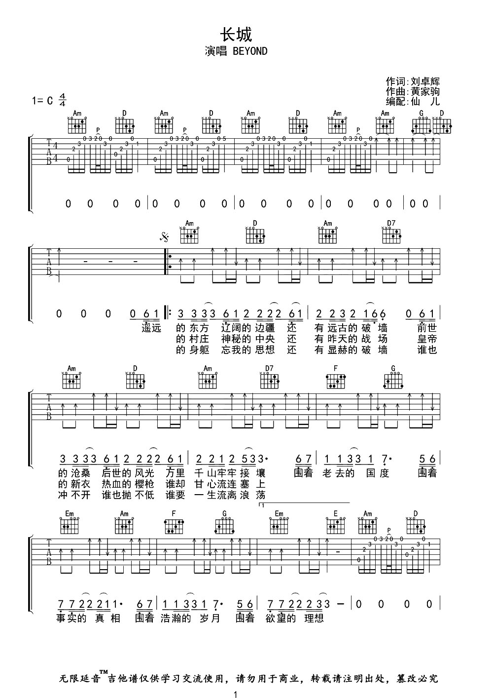 长城吉他谱 - beyond - C调吉他弹唱谱 - 原版