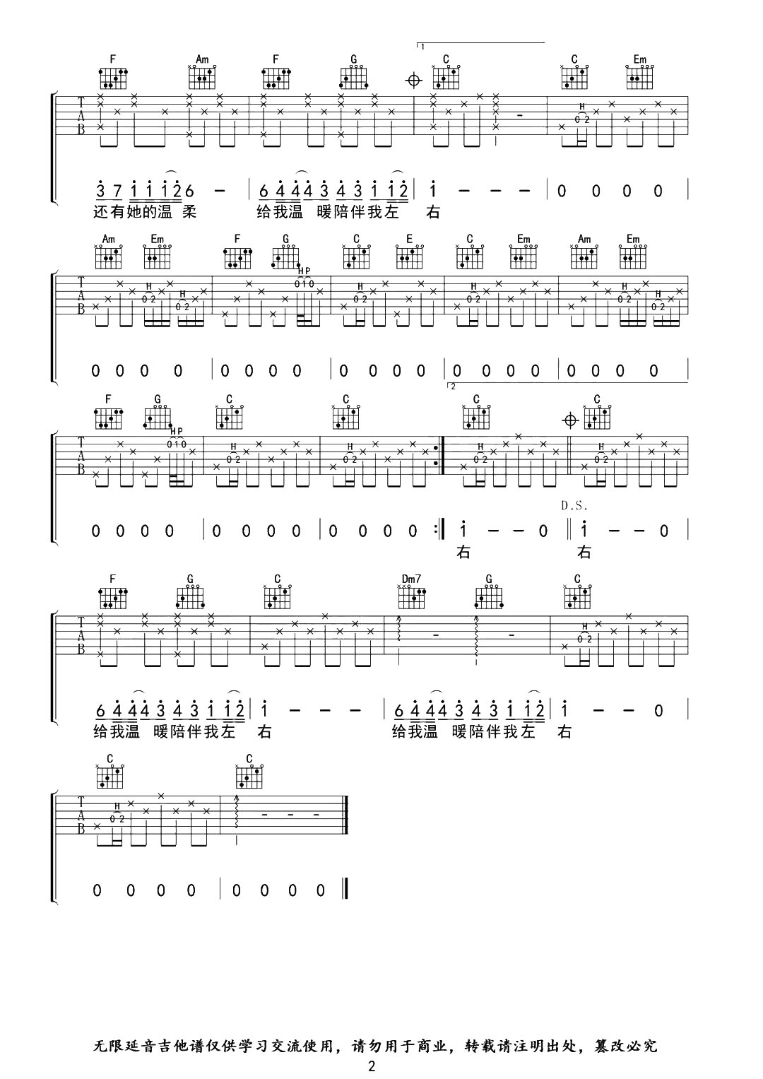 曲谱介绍: 这首曲谱由无限延音编配制谱,总共2张高清图片谱,选用C调指法,弹唱难度适中,前奏完整,初中级的朋友也可很好上手。