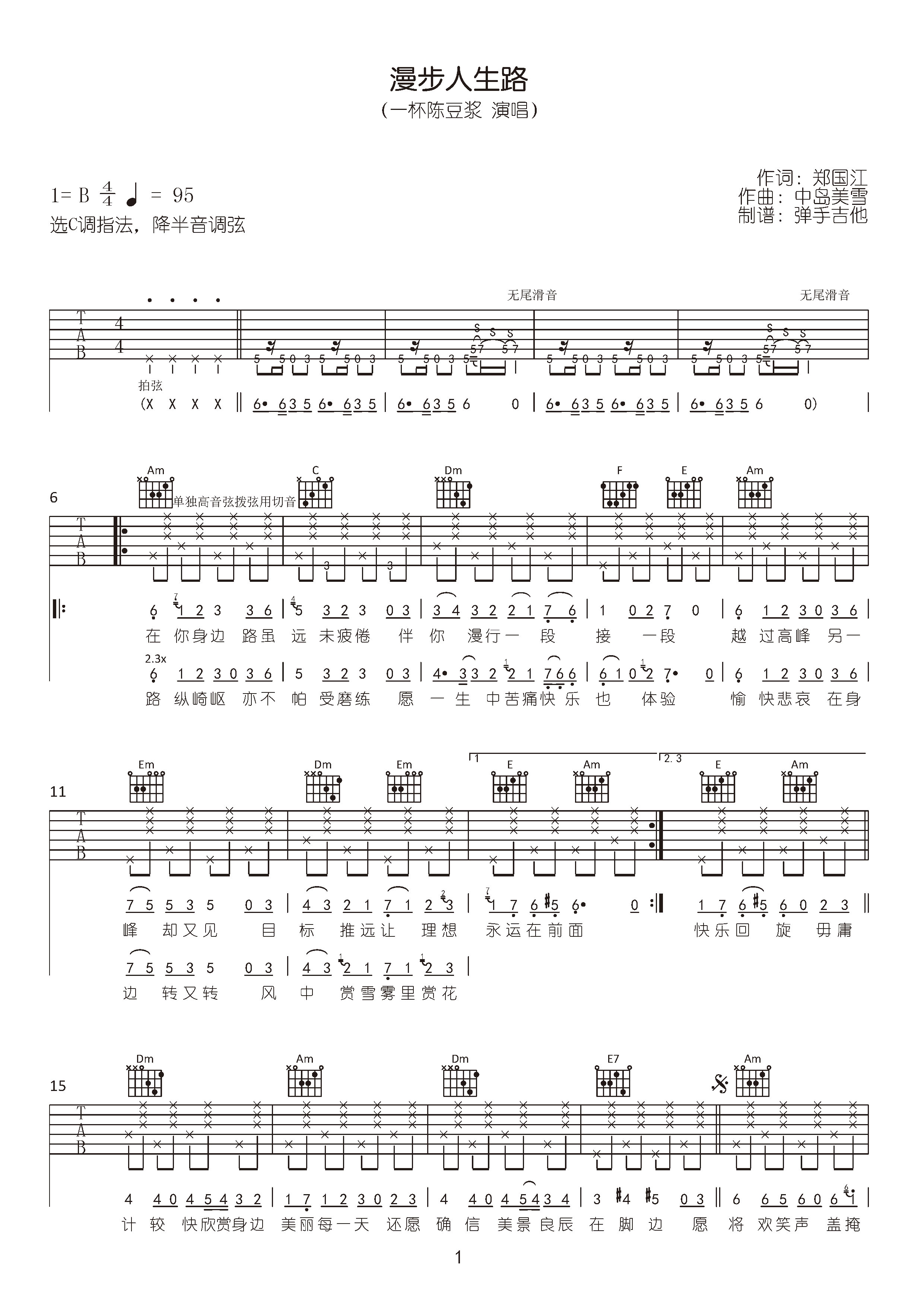 漫步人生路吉他谱 - 一杯陈豆浆 - C调吉他弹唱谱