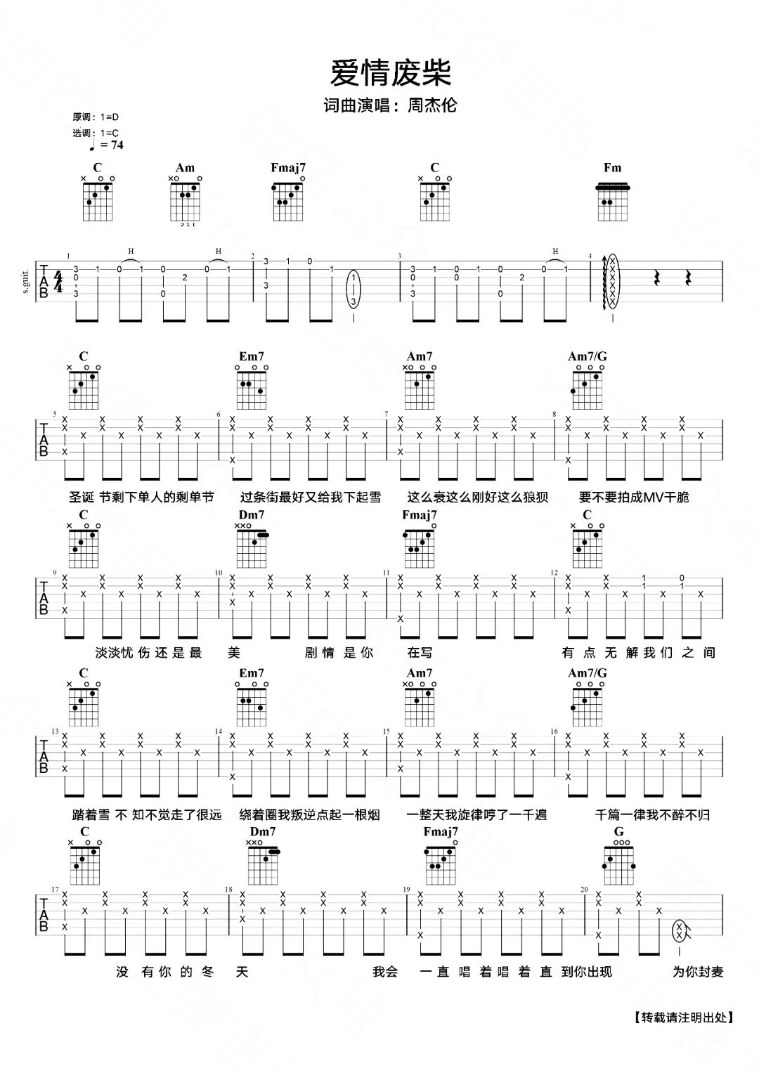 爱情废柴吉他谱 - 周杰伦 - C调吉他弹唱谱