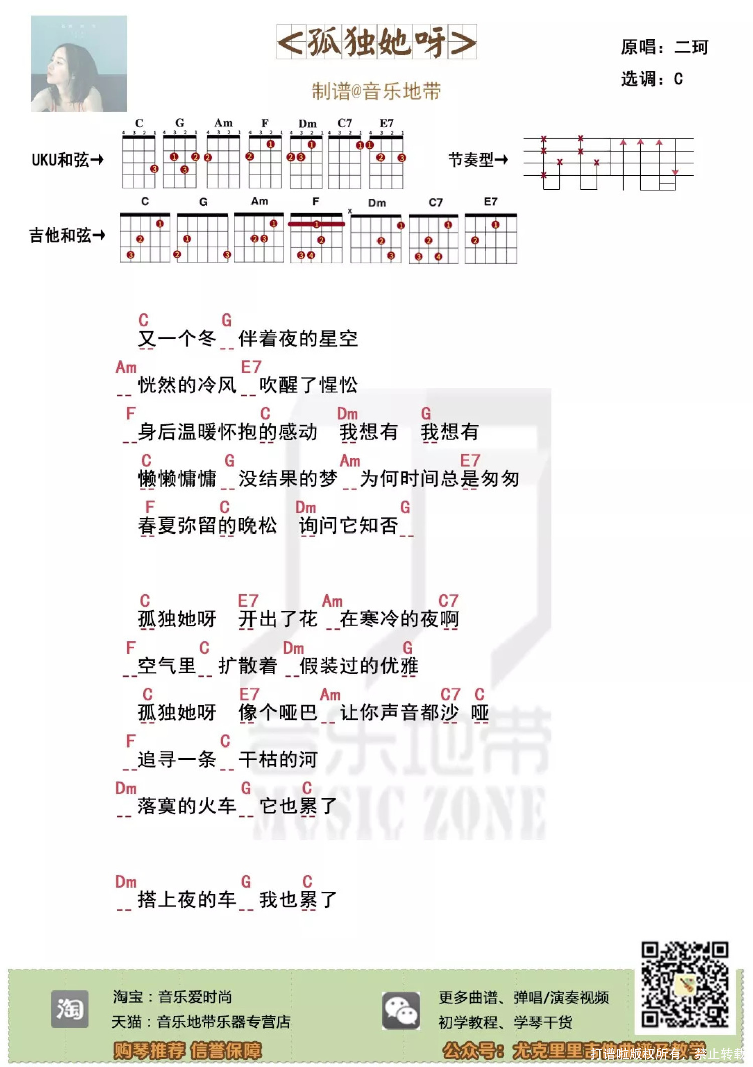 孤独她呀尤克里里谱 - 二珂