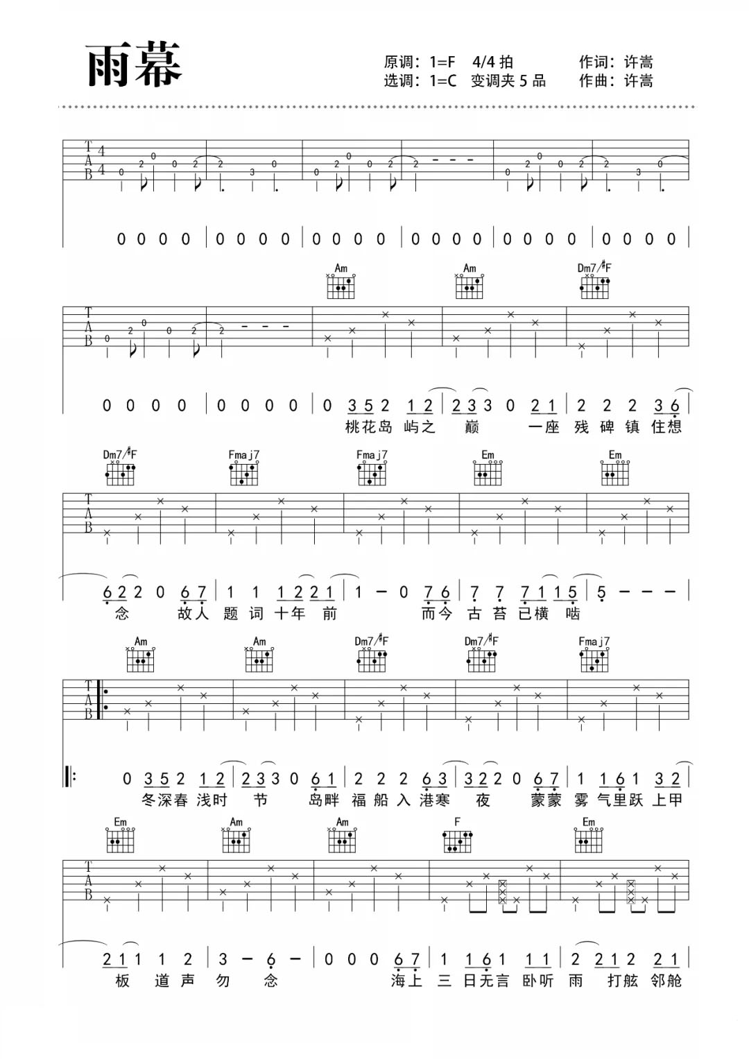 雨幕吉他谱 - 许嵩 - C调吉他弹唱谱 - 原版