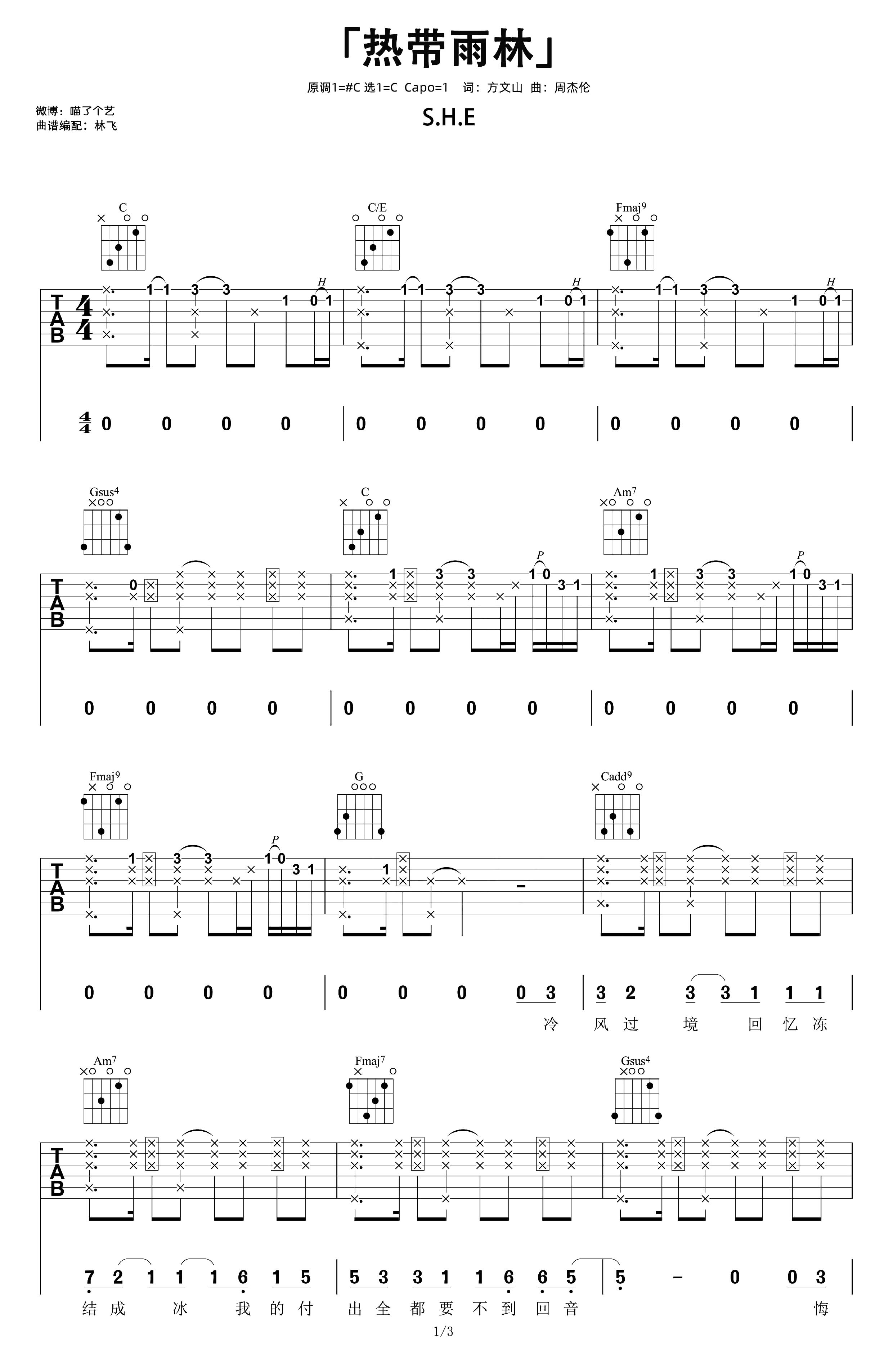 热带雨林吉他谱 - SHE - C调吉他弹唱谱