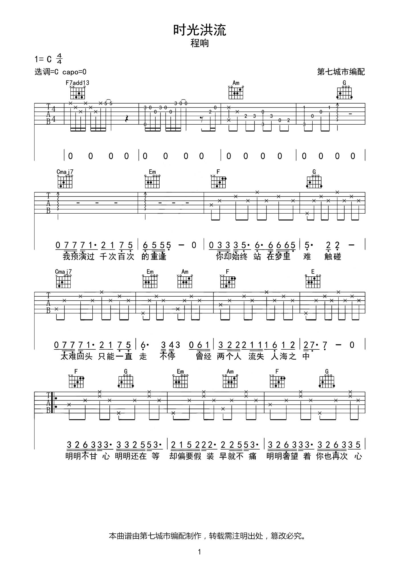 时光洪流吉他谱 - 程响 - C调吉他弹唱谱 - 原版