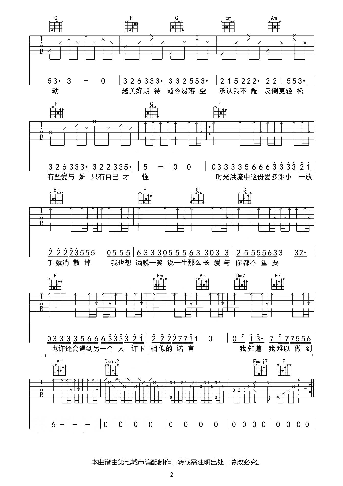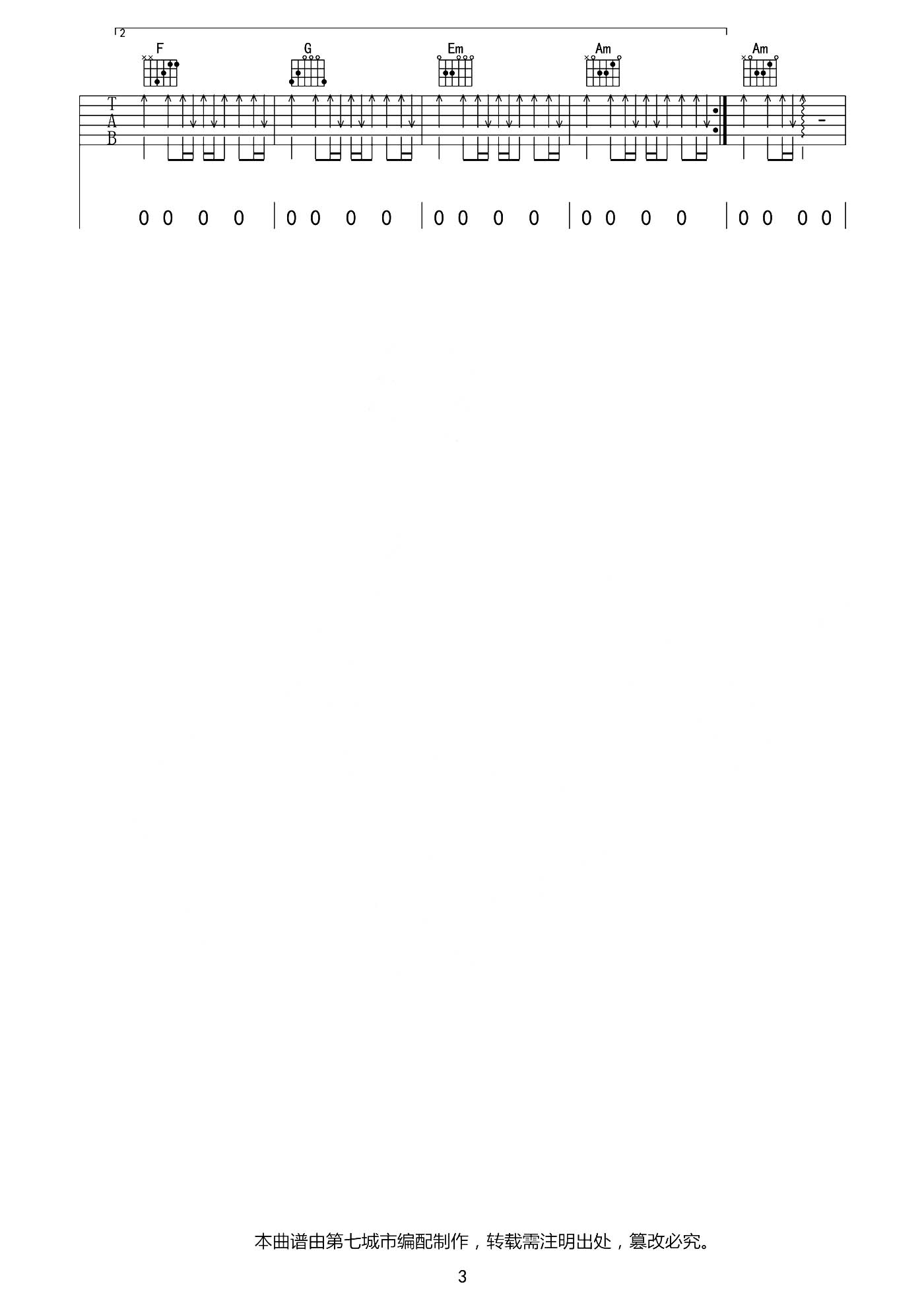 曲谱介绍: 这首曲谱,由第七城市编配,选用C调指法,标准调音,不用变调夹,还原度较高,推荐练习。