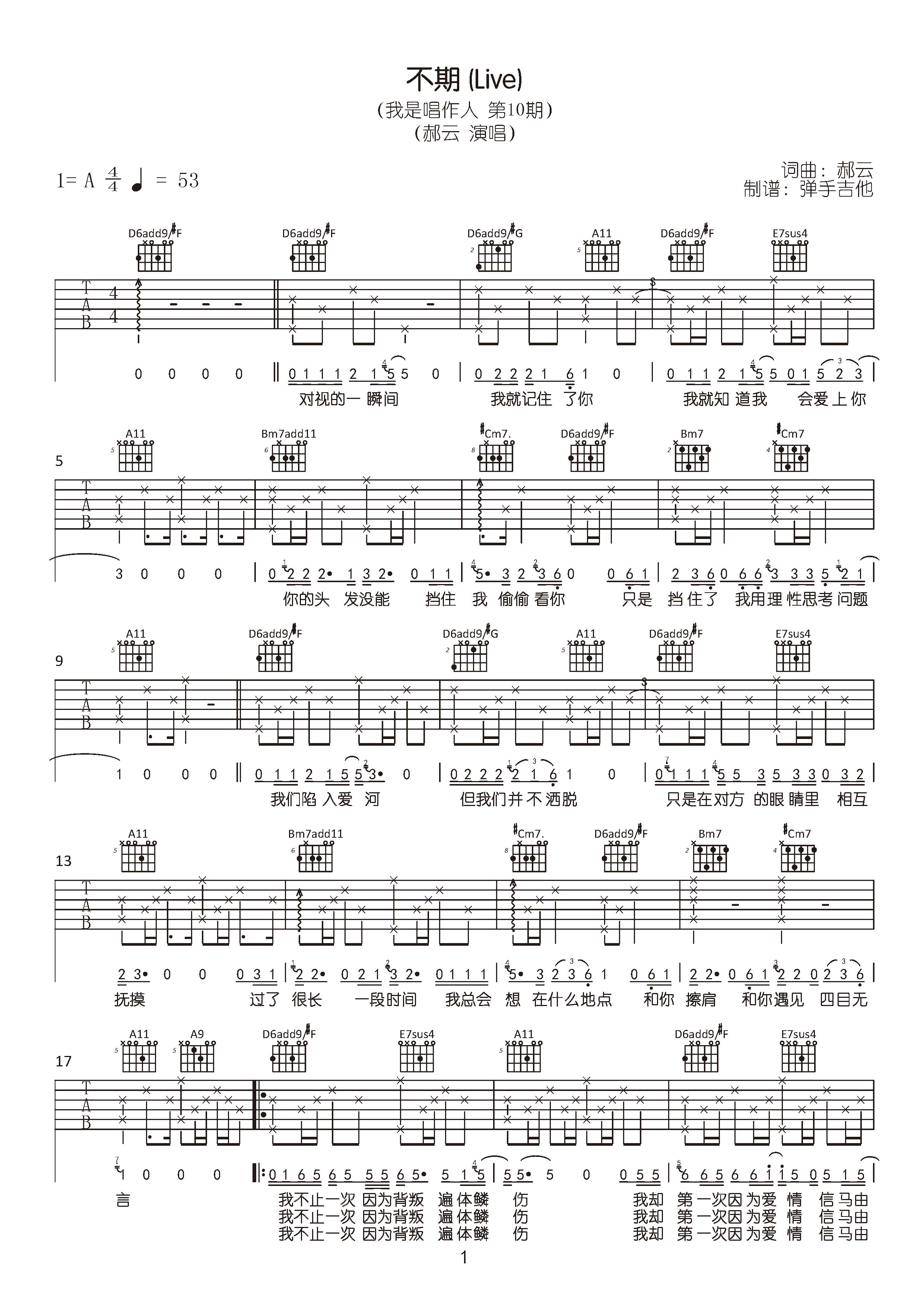 不期吉他谱 - 郝云 - A调吉他弹唱谱