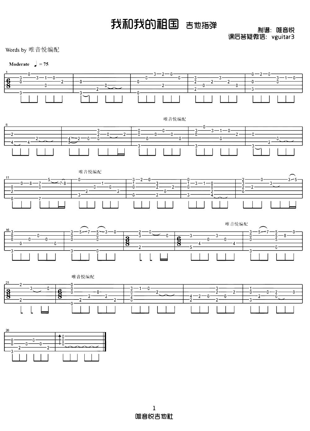曲谱介绍: 《我和我的祖国》吉他指弹演示视频