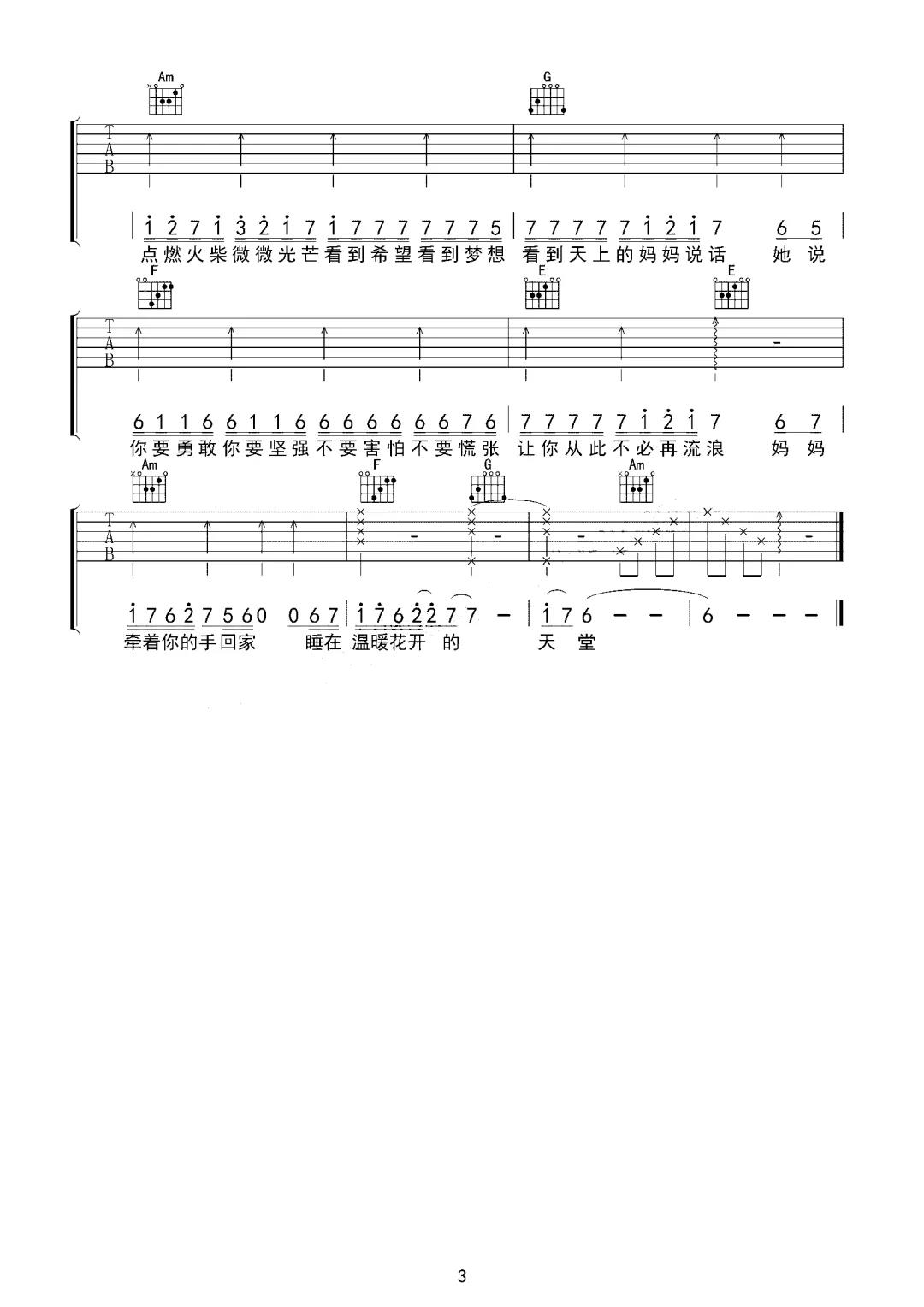 曲谱介绍: 这首曲谱总共3张高清图片谱,选用C调指法,变调夹5品弹唱原调,并且下方附有演示视频。 《火彩天堂》吉他弹唱演示视频