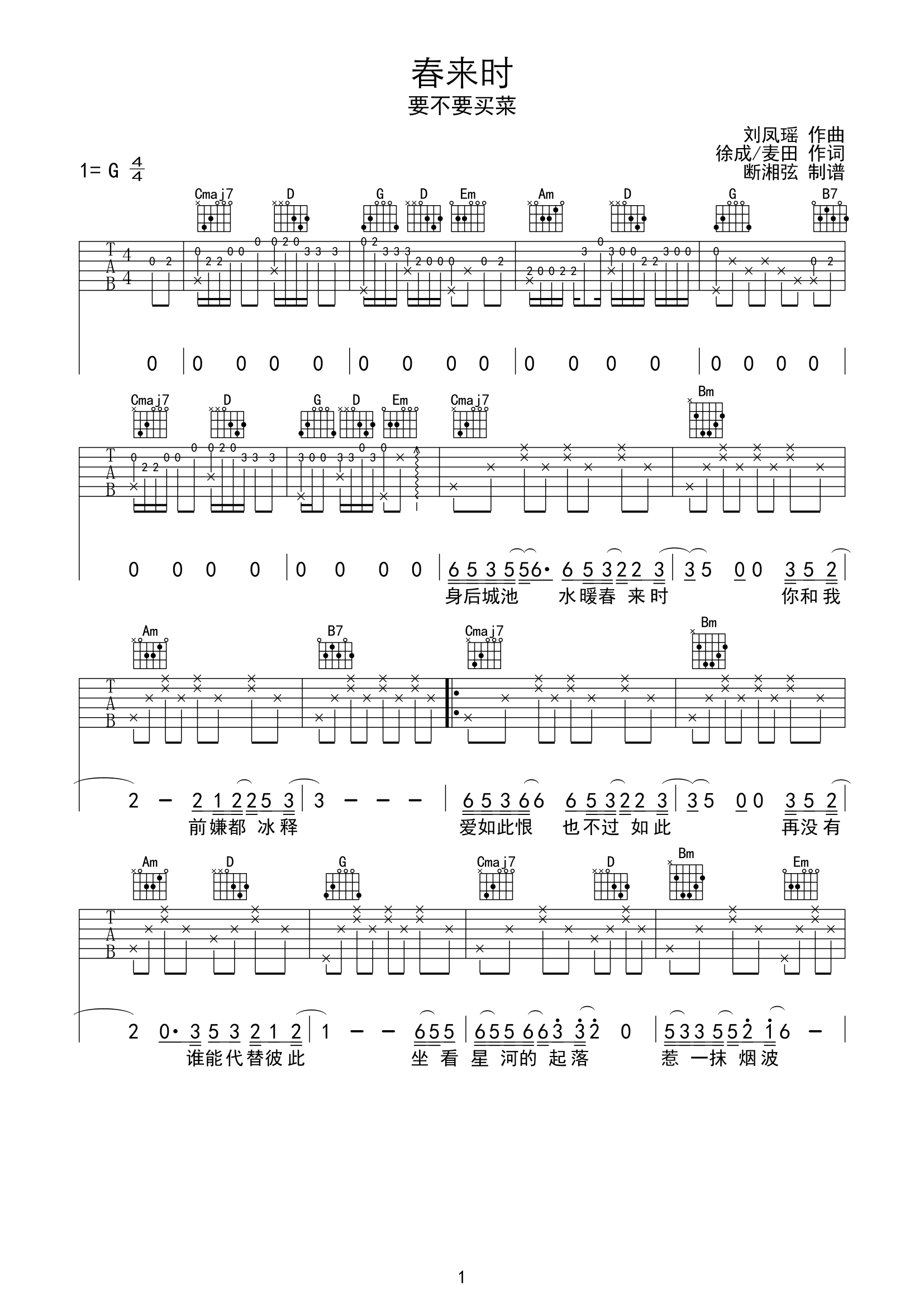 春来枕星河吉他谱 - 要不要买菜 - G调吉他弹唱谱 - 原版