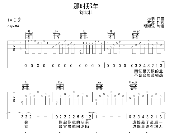 那时那年吉他谱 - 刘大壮 - C调吉他弹唱谱 - 原版