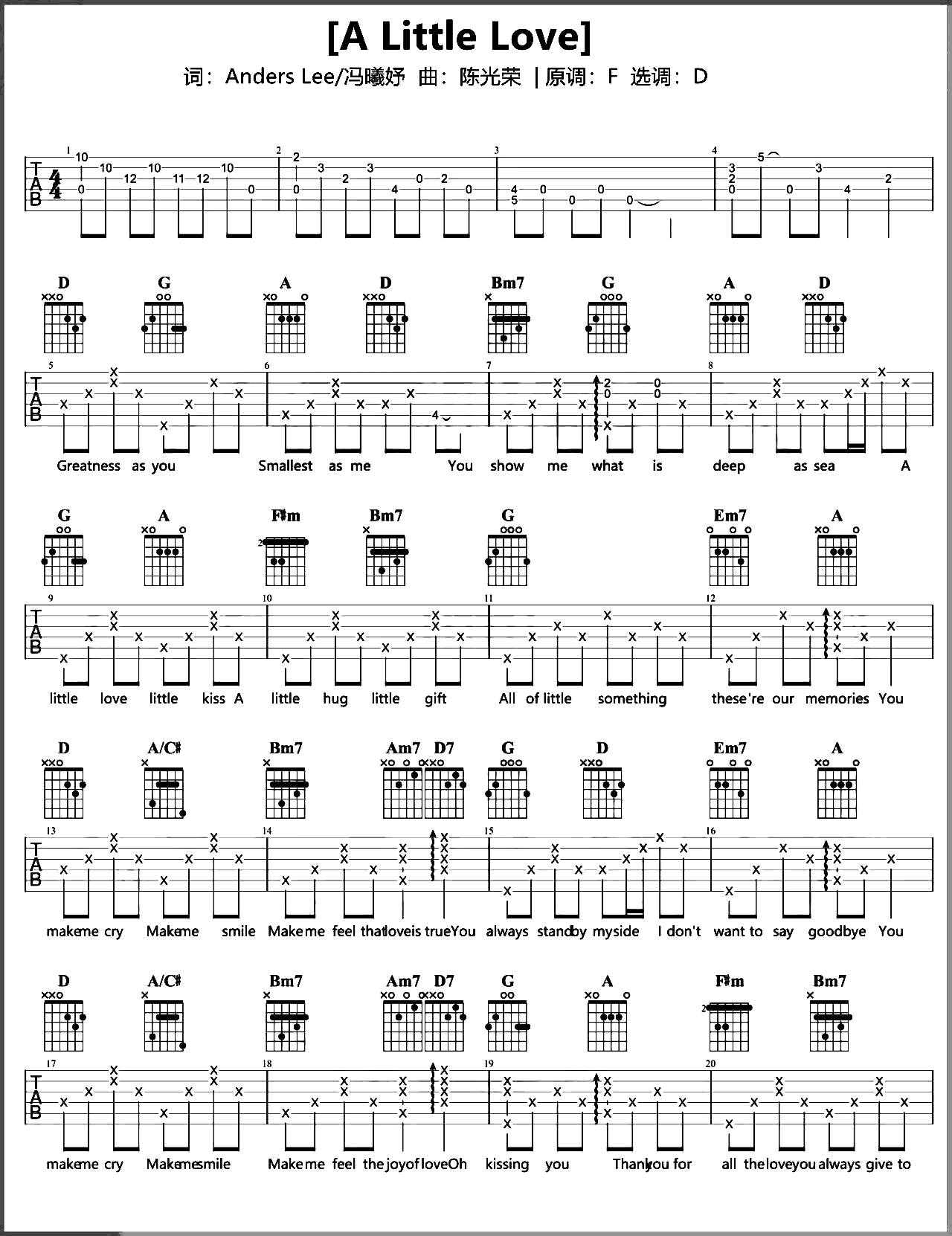 A Little Love吉他谱 - A - D调吉他弹唱谱