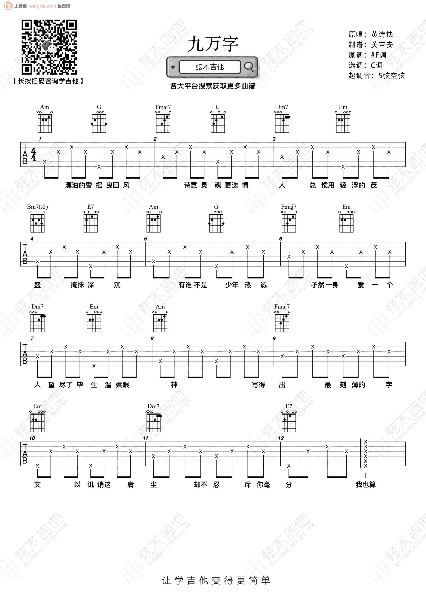 九万字吉他谱 - 黄诗扶 - C调吉他弹唱谱