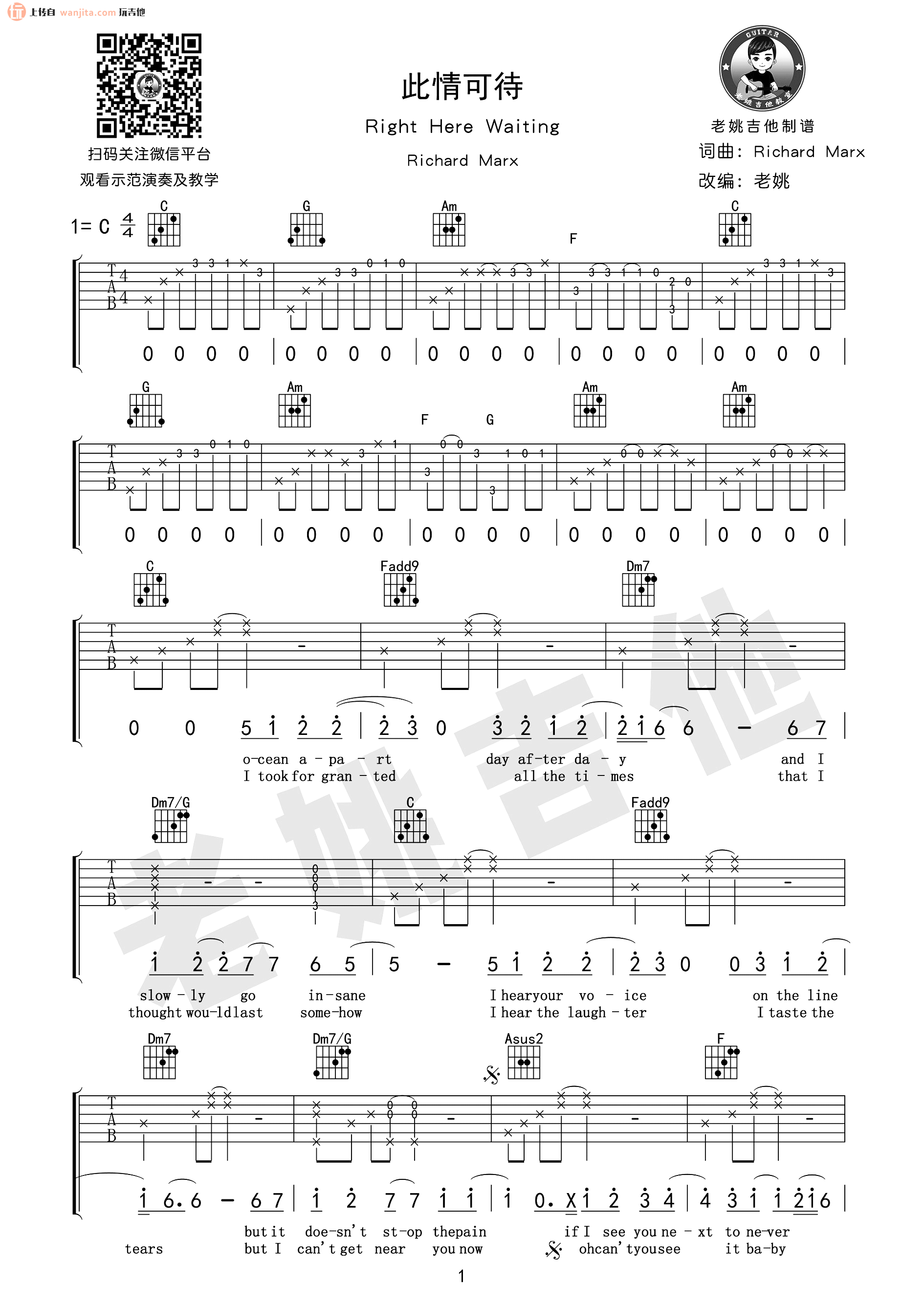 此情可待吉他谱 - 理查德·马克斯 - C调吉他弹唱谱 - 原版