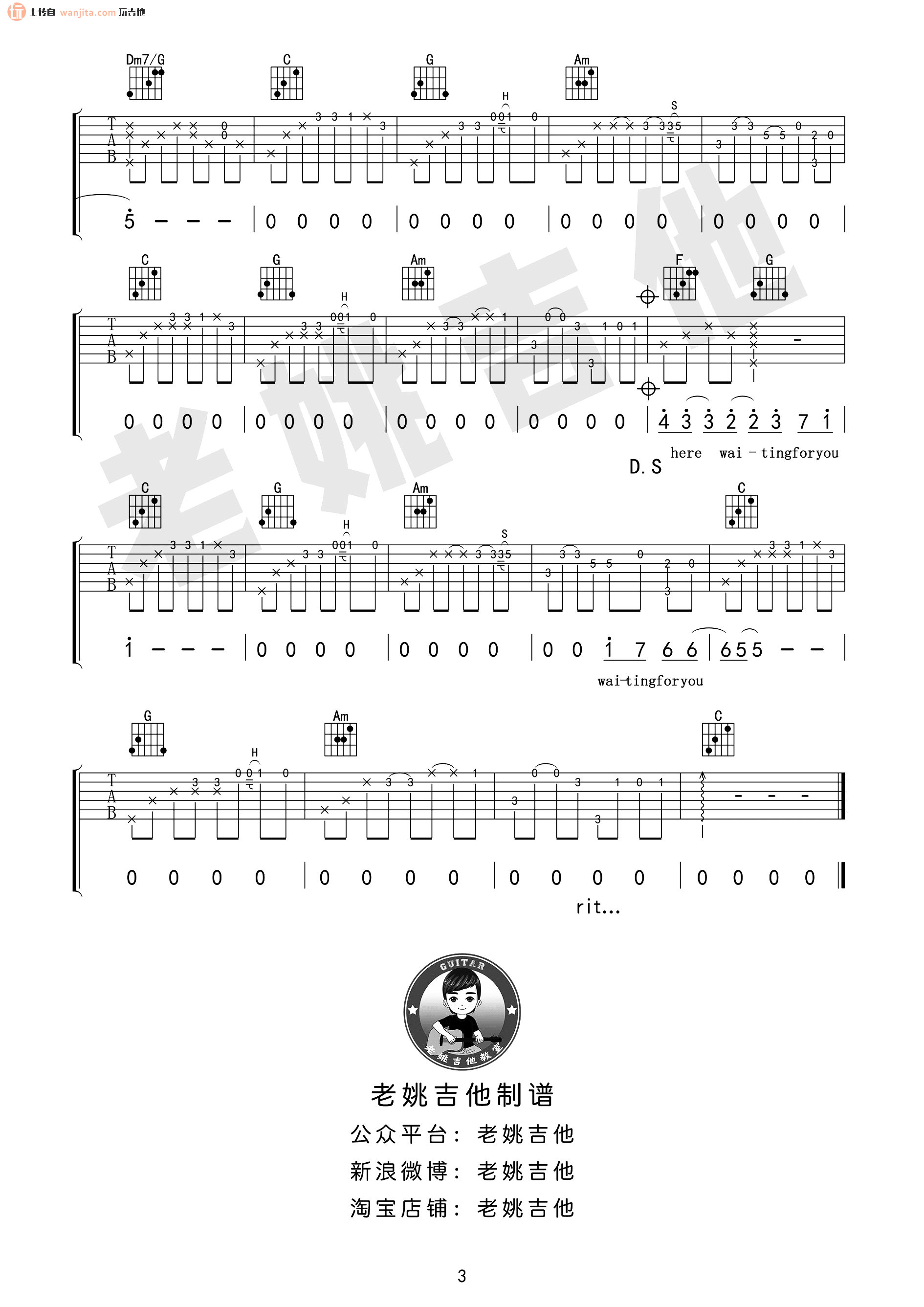 曲谱介绍: 此情可待C调六线谱,总共3张高清图片谱,不使用变调夹,由老姚吉他制谱。整首歌曲通过吉他的演绎更为贴合歌词意境,非常适合吉他弹唱的一首歌曲,曲谱有一定的难度,不推荐新手学习,适合进阶学习练习,注意左手和弦的变换和歌曲的层次。