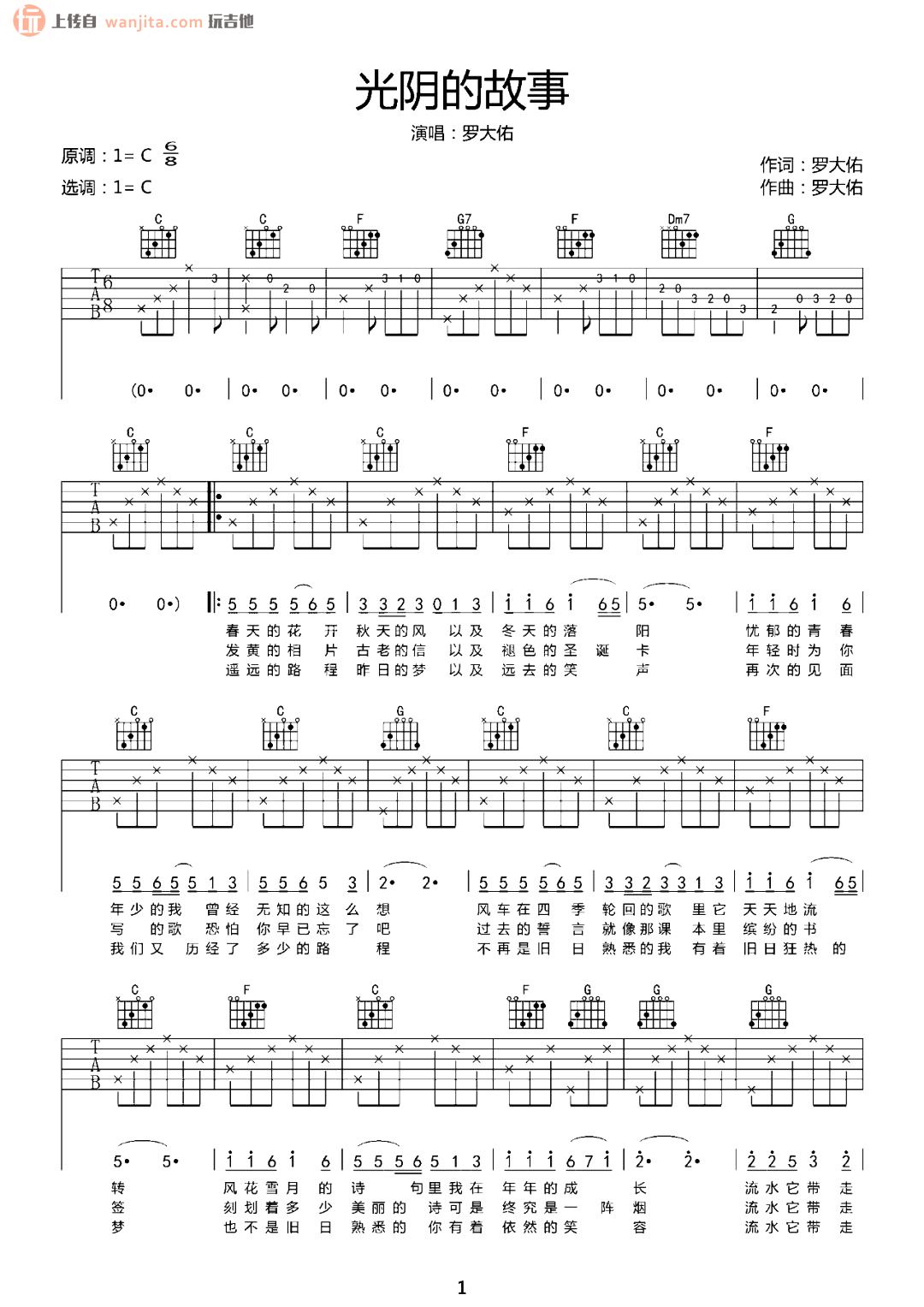 光阴的故事吉他谱 - 罗大佑 - C调吉他弹唱谱 - 原版