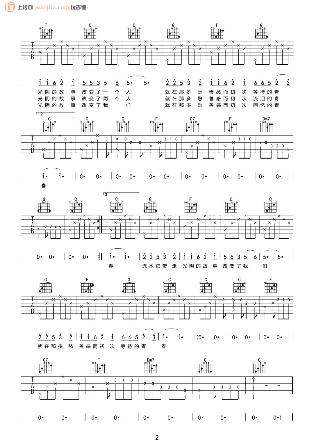 当前位置:琴谱网>吉他弹唱>光阴的故事