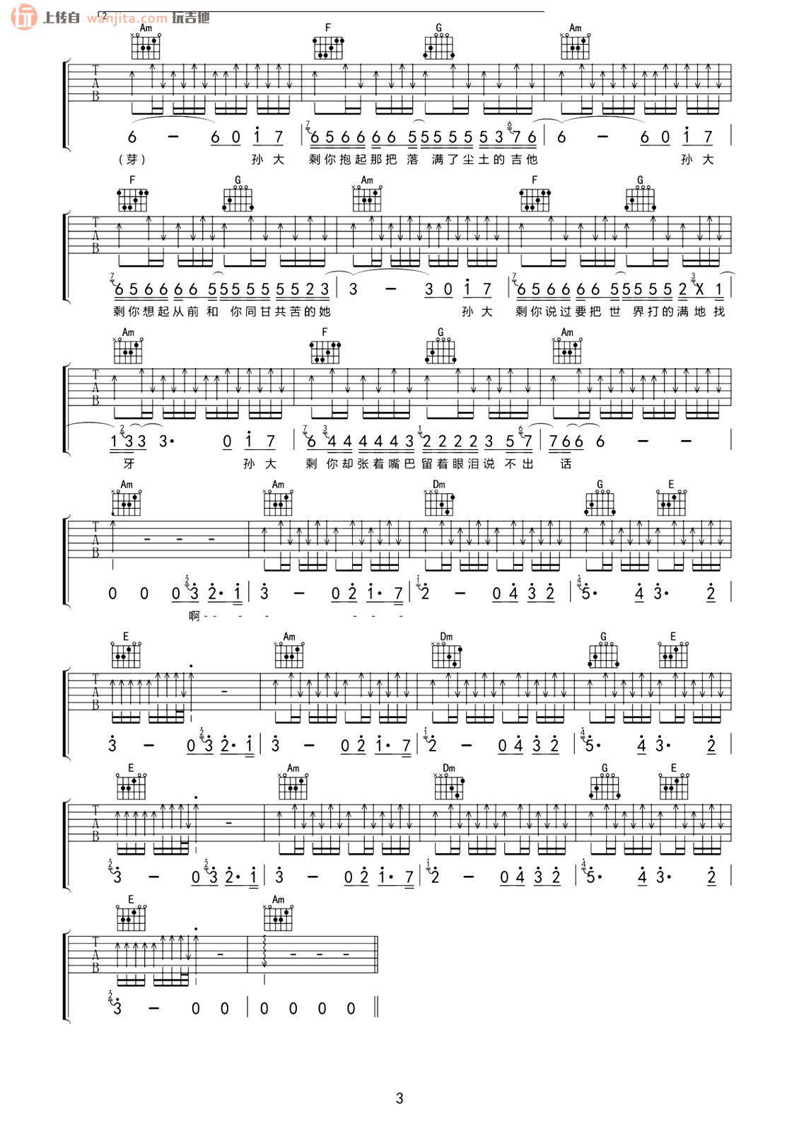 当前位置:琴谱网>吉他弹唱>孙大剩