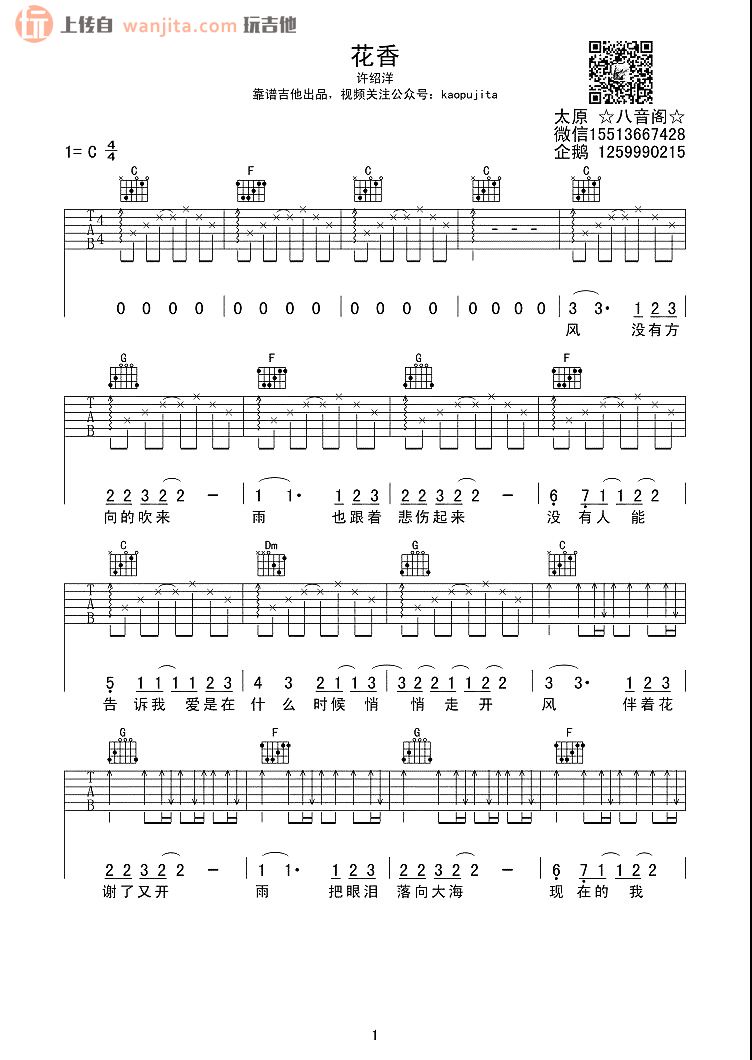 花香吉他谱 - 许绍洋 - G调吉他弹唱谱 - 原版
