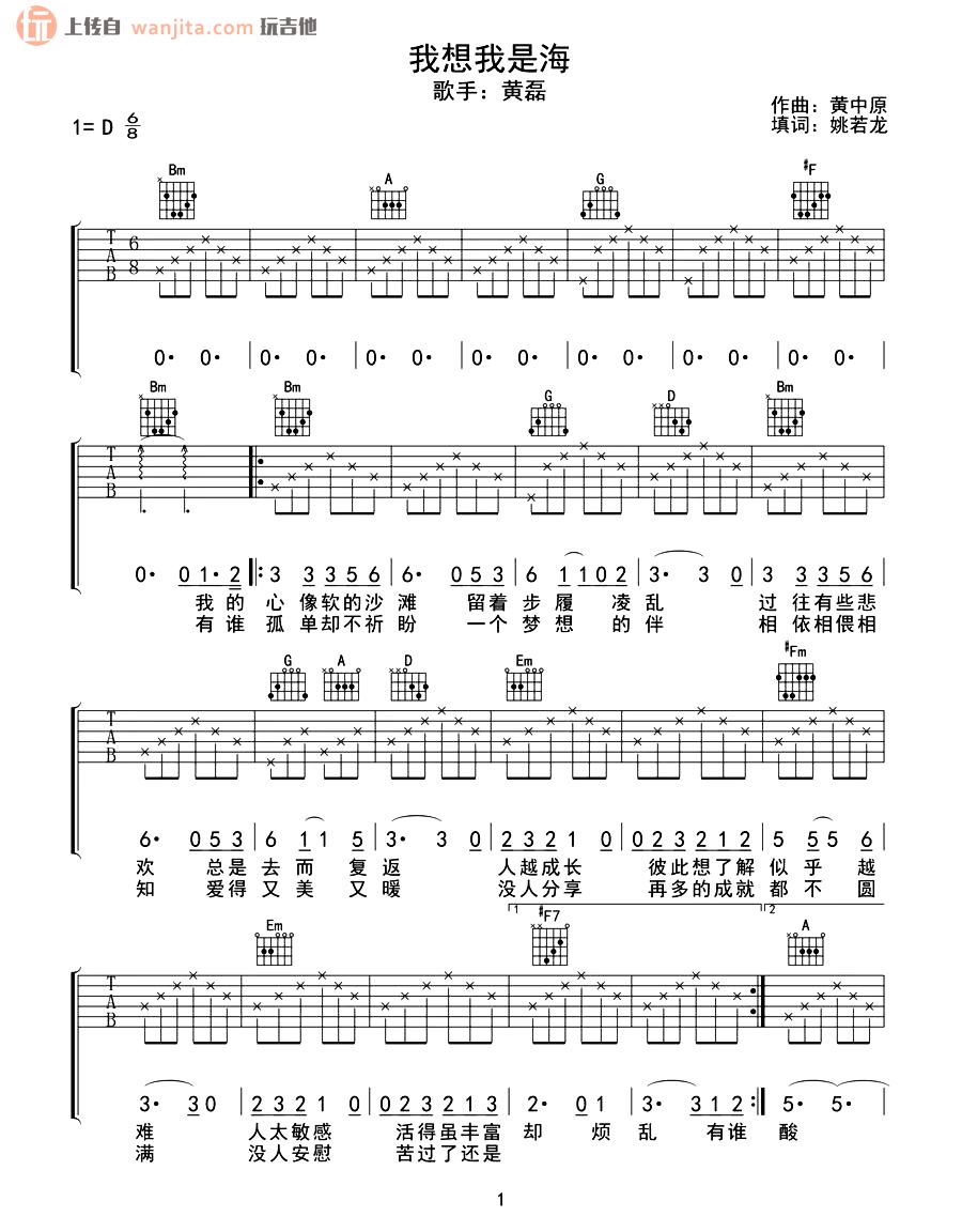 当前位置:琴谱网>吉他弹唱>我想我是海
