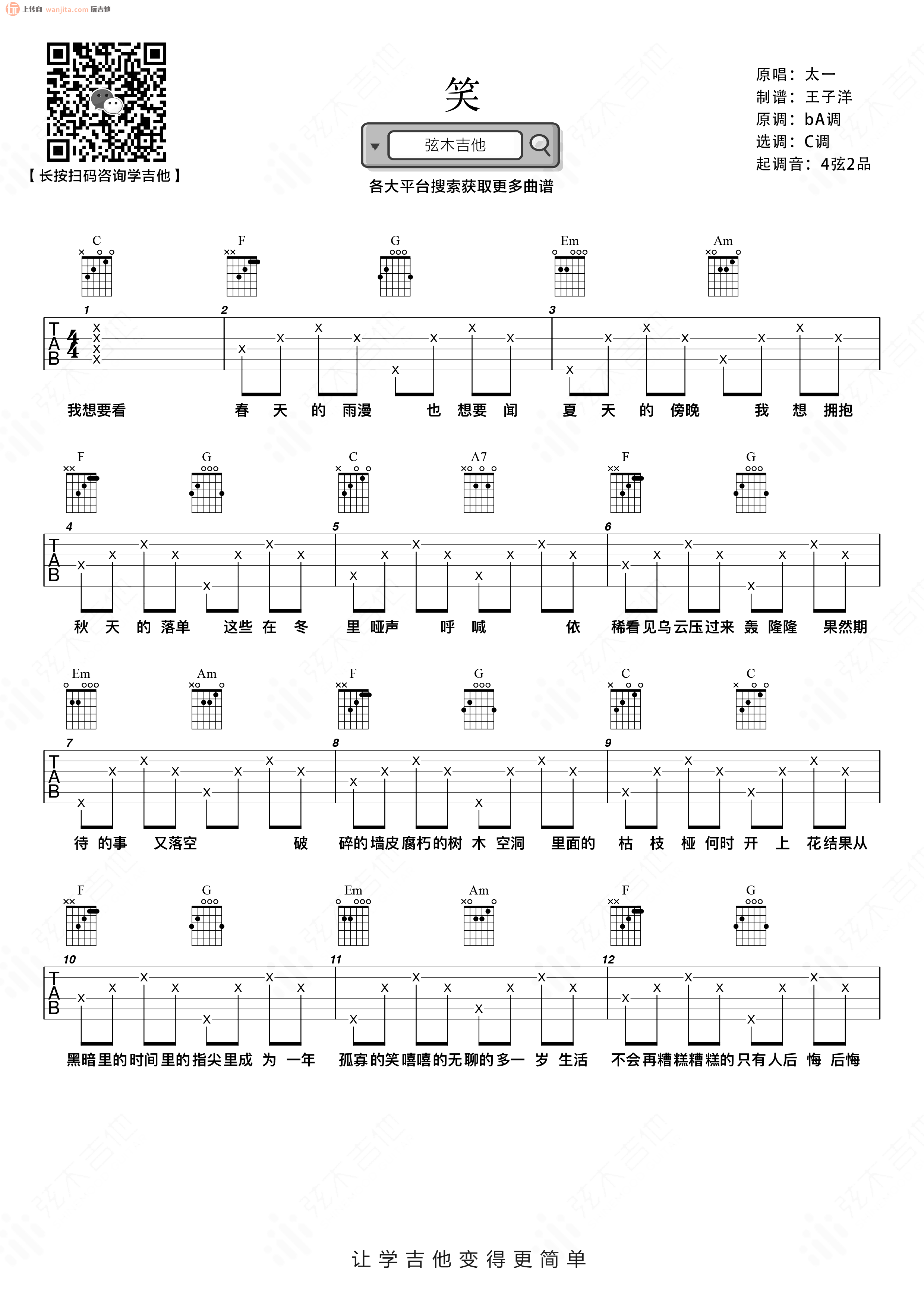 笑吉他谱 - 太一 - C调吉他弹唱谱