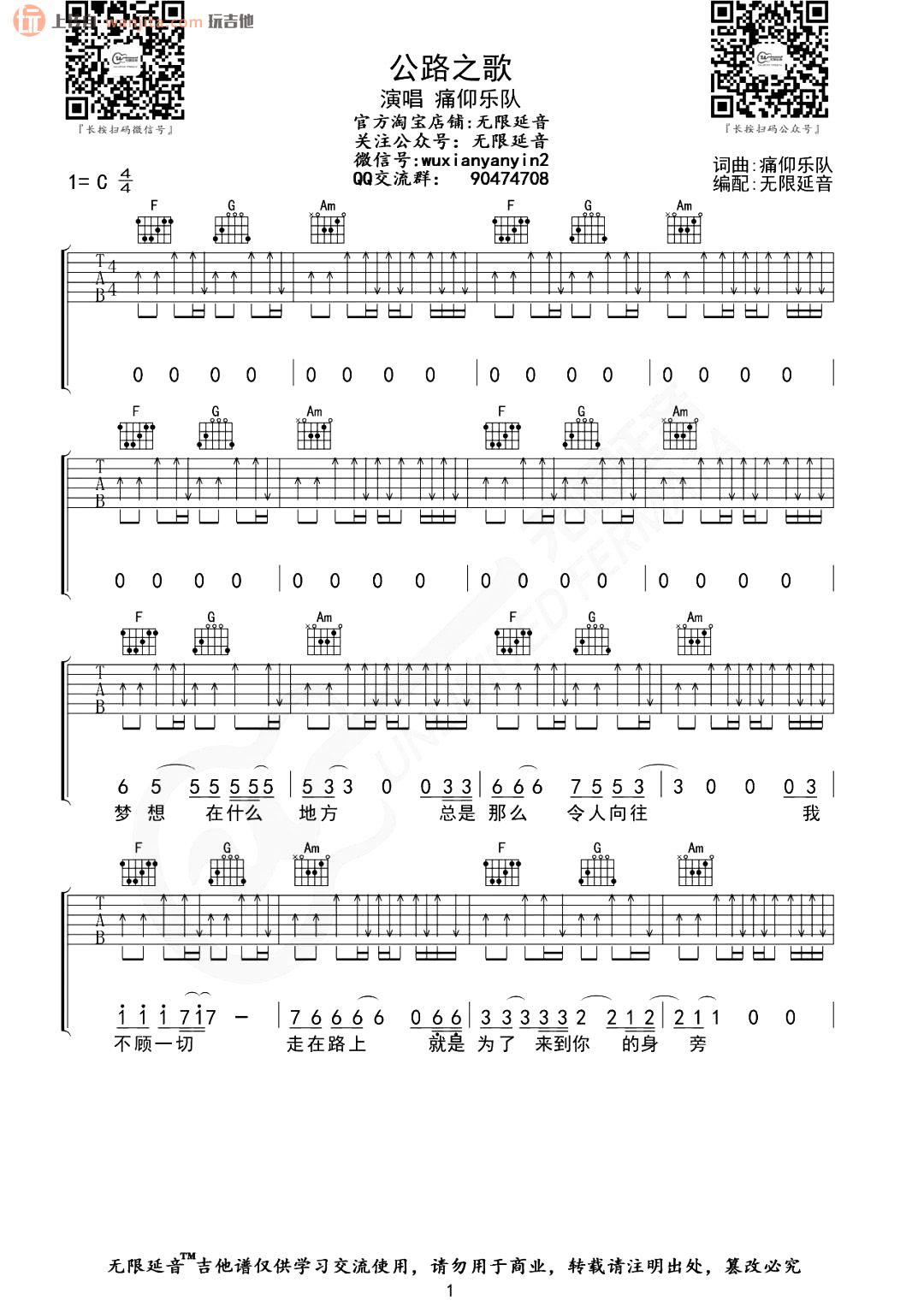 公路之歌吉他谱 - 痛仰乐队 - C调吉他弹唱谱 - 原版