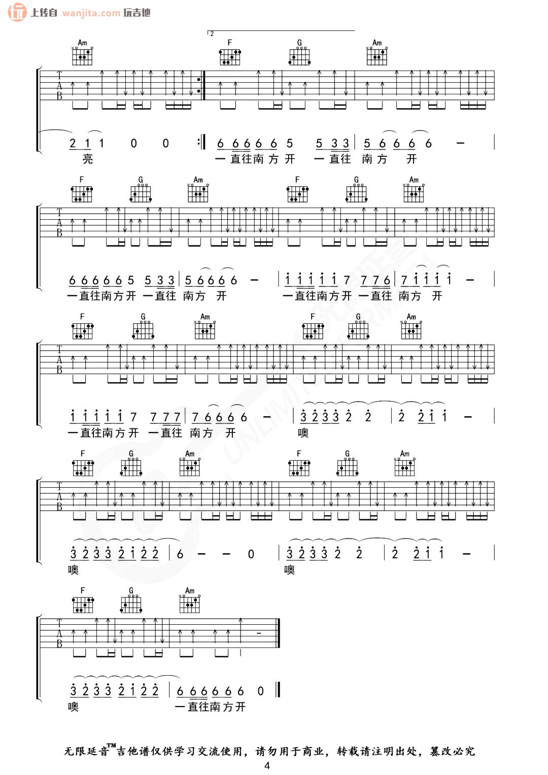 曲谱介绍: 公路之歌C调六线谱,不使用变调夹。整张曲谱都通过扫弦来创造节奏,整首歌曲轻快的节奏很适合朋友们一起玩,有一定难度的一张谱子,不适合新手练习。总共4张高清图片谱例,由无限延音制谱分享