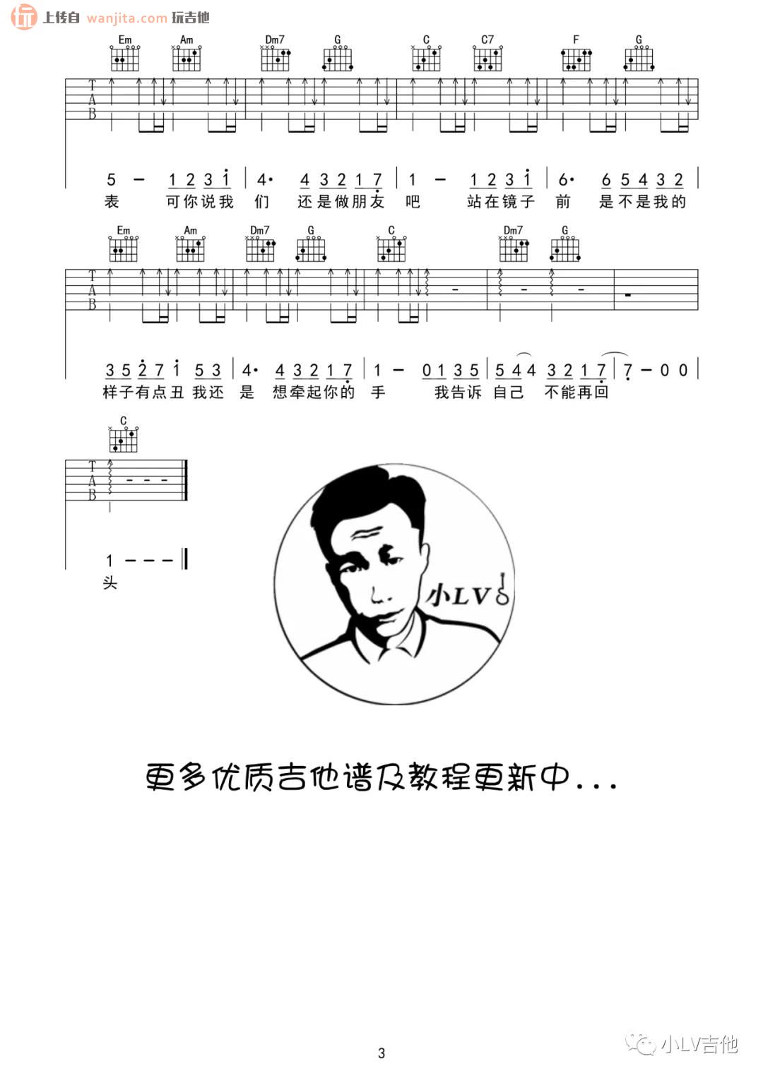 曲谱介绍: 《我们还是做朋友吧》吉他谱,选用C调,总共3张高清图片谱,由革命吉他分享。比较简单的是歌曲的右手节奏型,整体难度中等,这首伤感的歌曲比较适合进阶练习弹唱,不推荐新手学习。总共2张高清图片谱例。 《我们还是做朋友吧》吉他谱图例