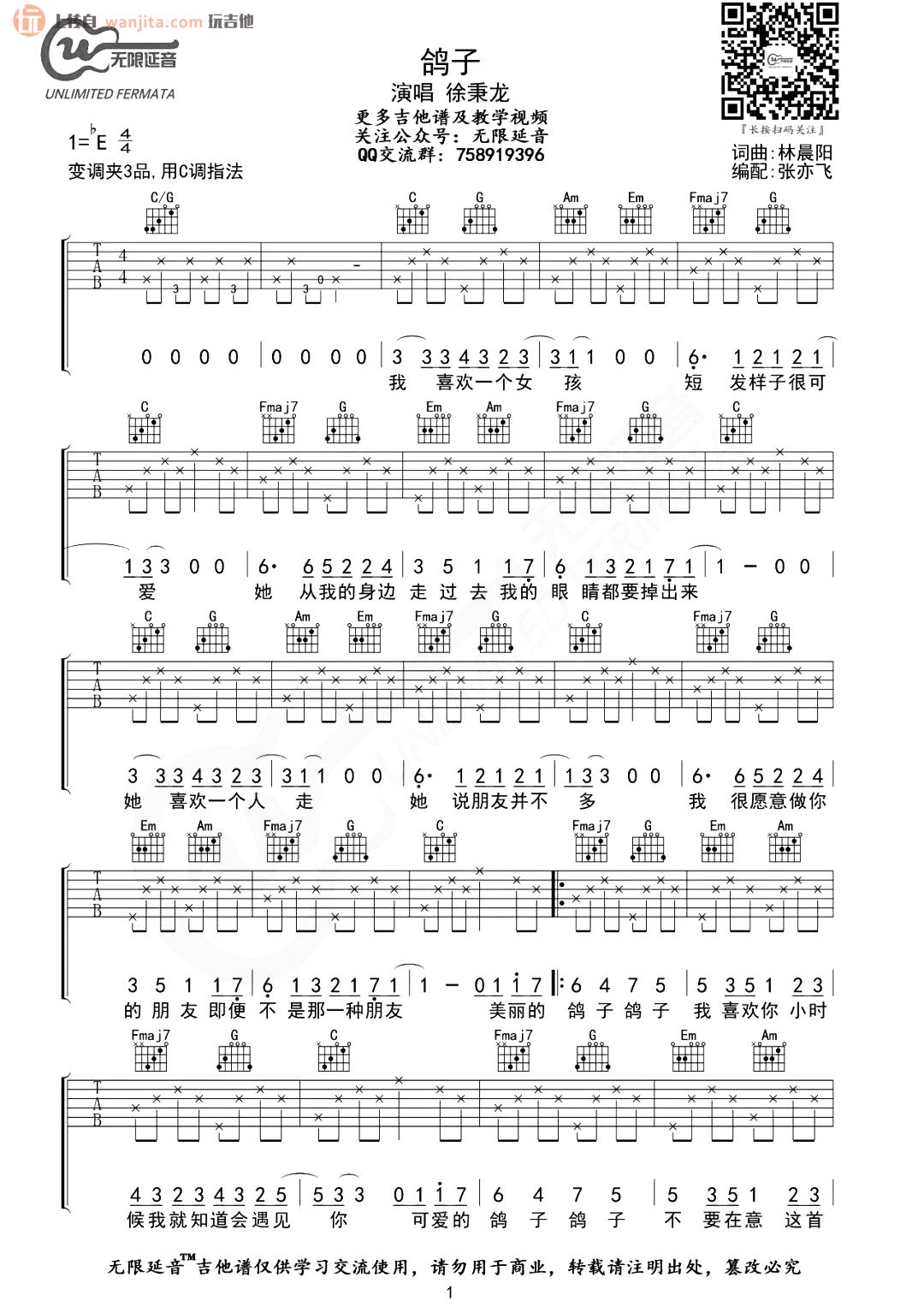 当前位置:琴谱网>吉他弹唱>鸽子
